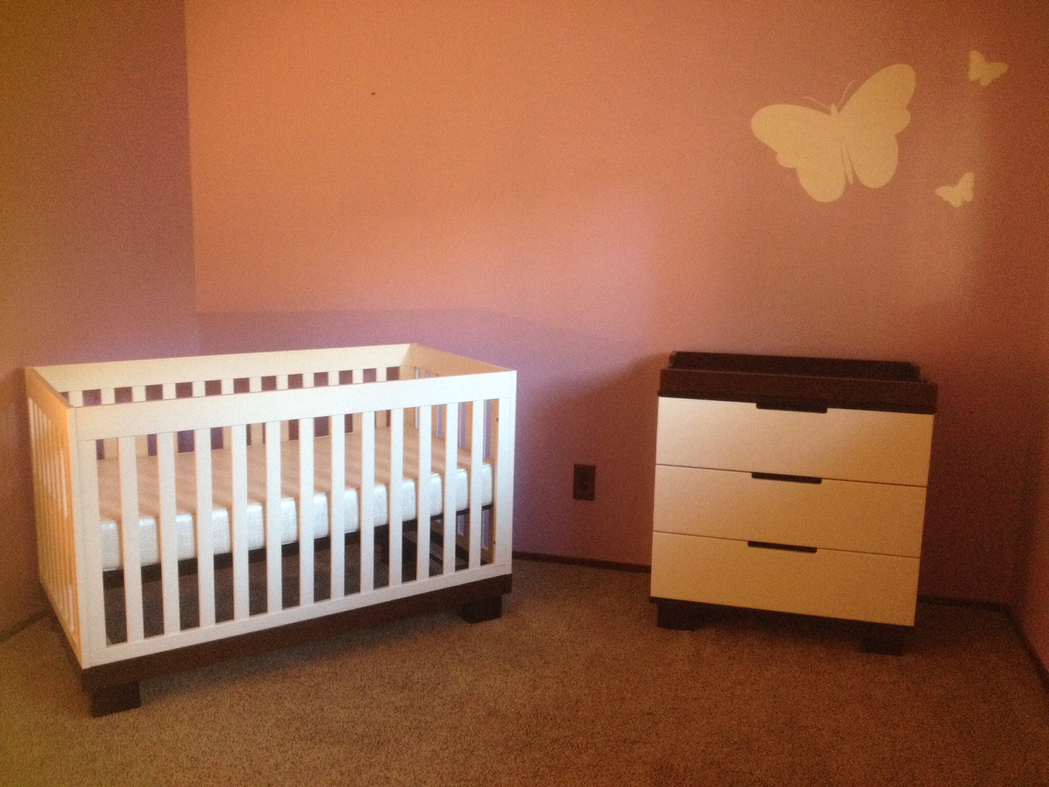 Crib and dresser. I'm going to replace the dresser knobs with glass ones - probably from Anthropology.