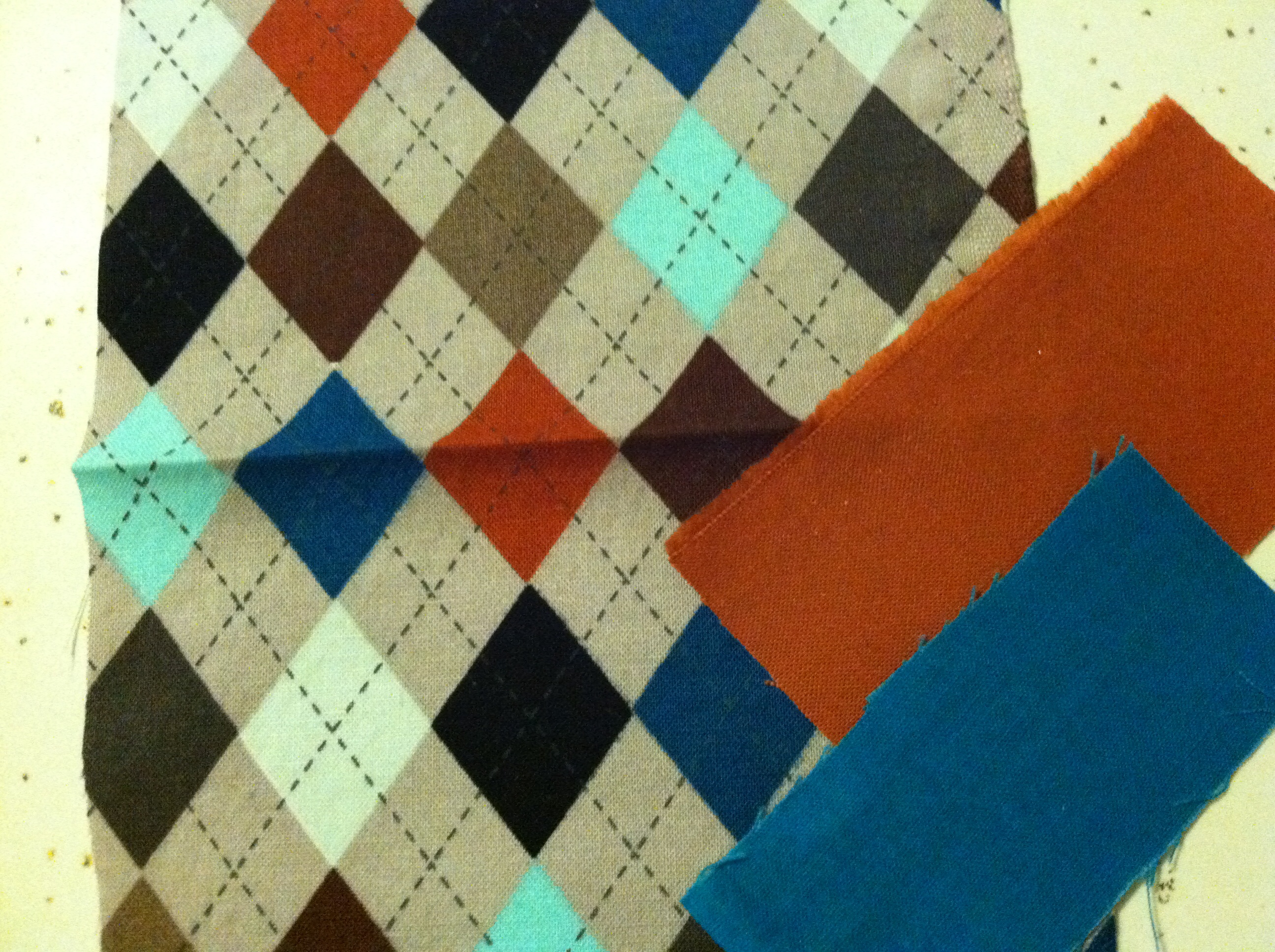 I've ordered the crib skirt (etsy) and here are fabric swatches she sent me. It will be the argyle with the orange border at the bottom and a teal strip in between.