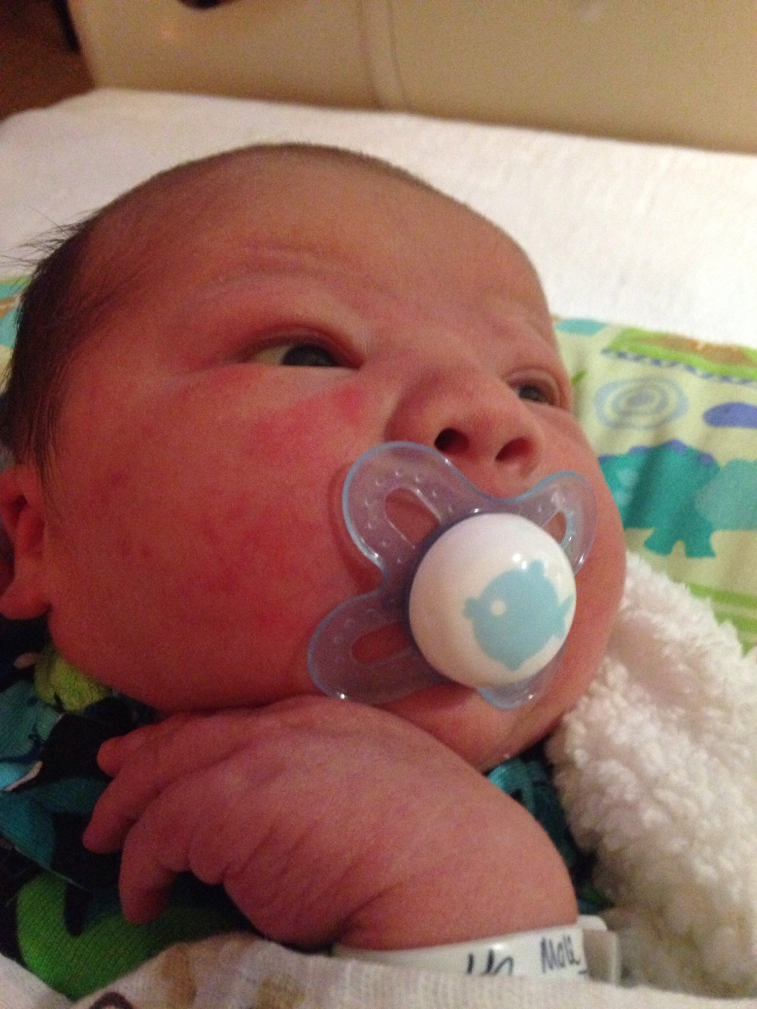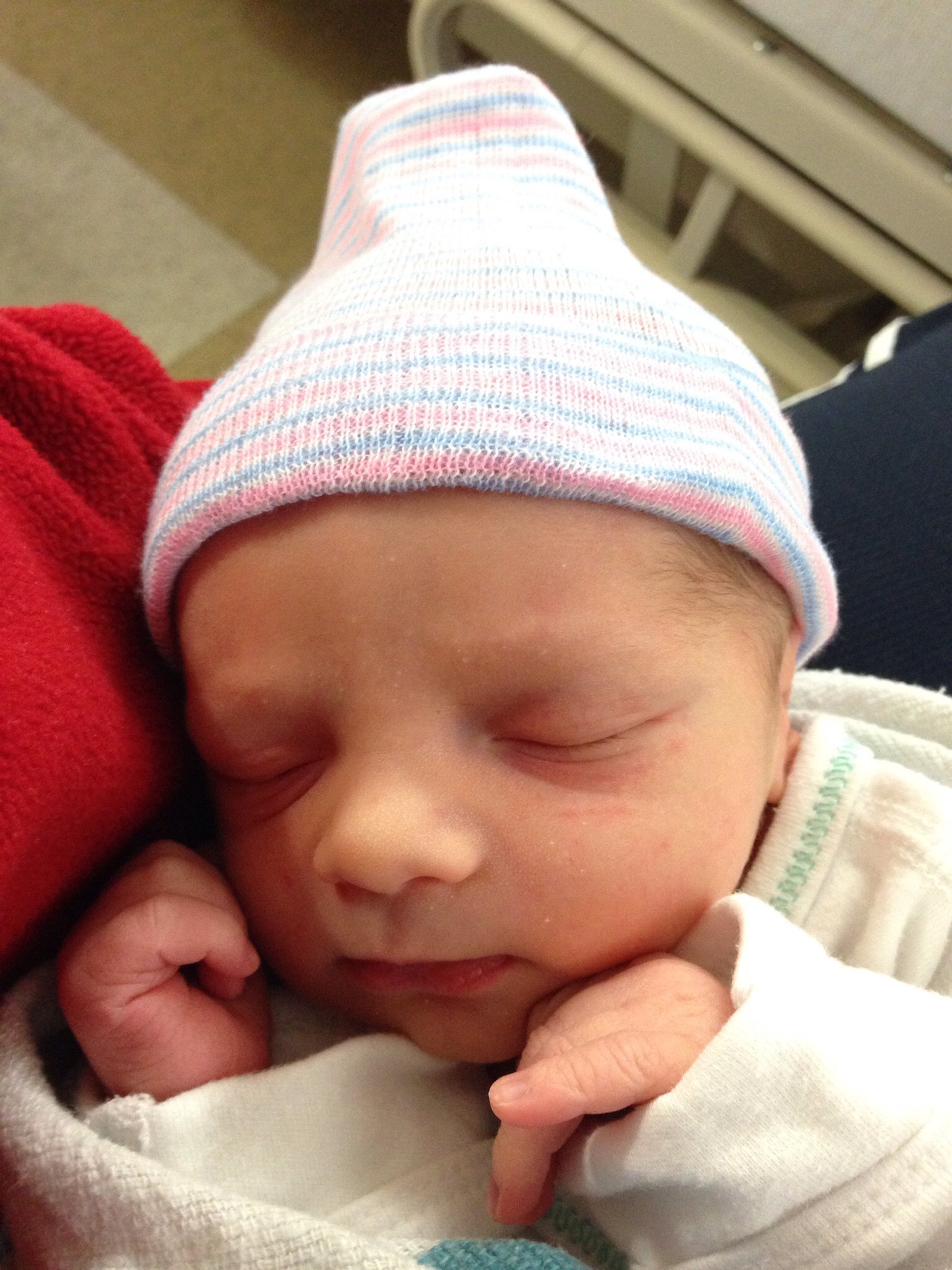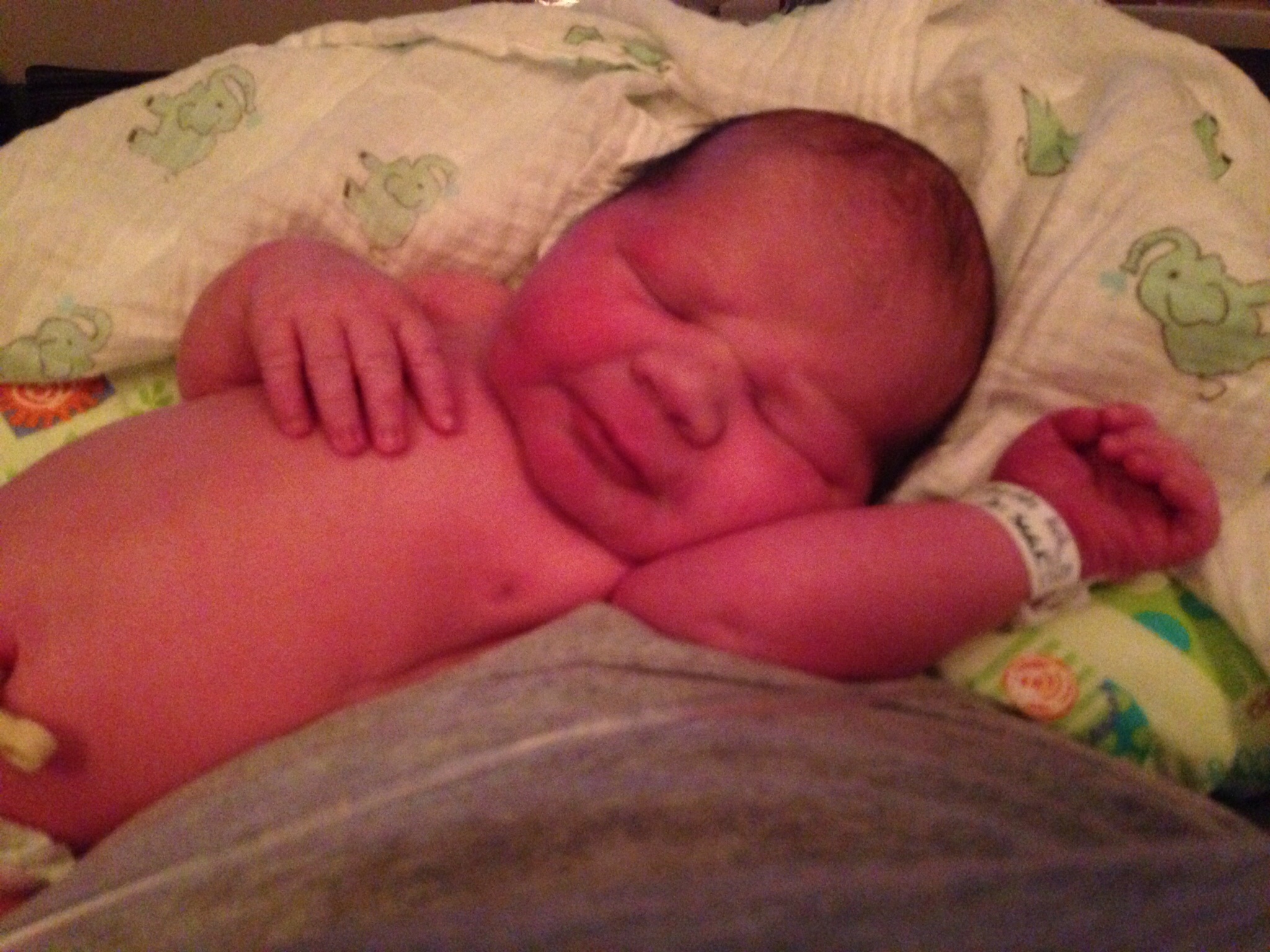 I almost forgot it was Tuesday. Guys I have an outside baby! And he's totally awesome! Last Thursday morning my water broke as I was getting ready for work. We went to L&D but I was only 1cm dilated. They started pitocin a little while later while we were still in the triage area. It seemed like everyone was having a baby that day. Around 6:00pm we finally got a delivery room. It took me awhile to dilate more but I finally did and started pushing around 11:30. H was born at 1:47 am on 12/5. 6lb6oz and 20.5 inches long. He really is awesome. Totally chill. Nursing well and trying to put on weight (he lost a pound since he was born).