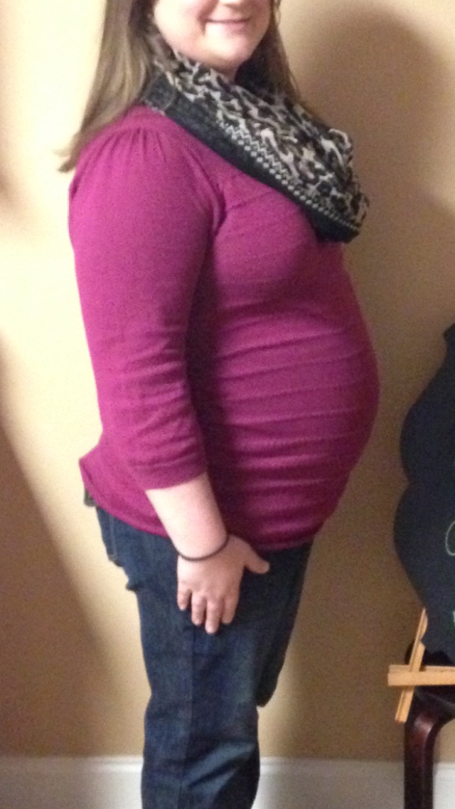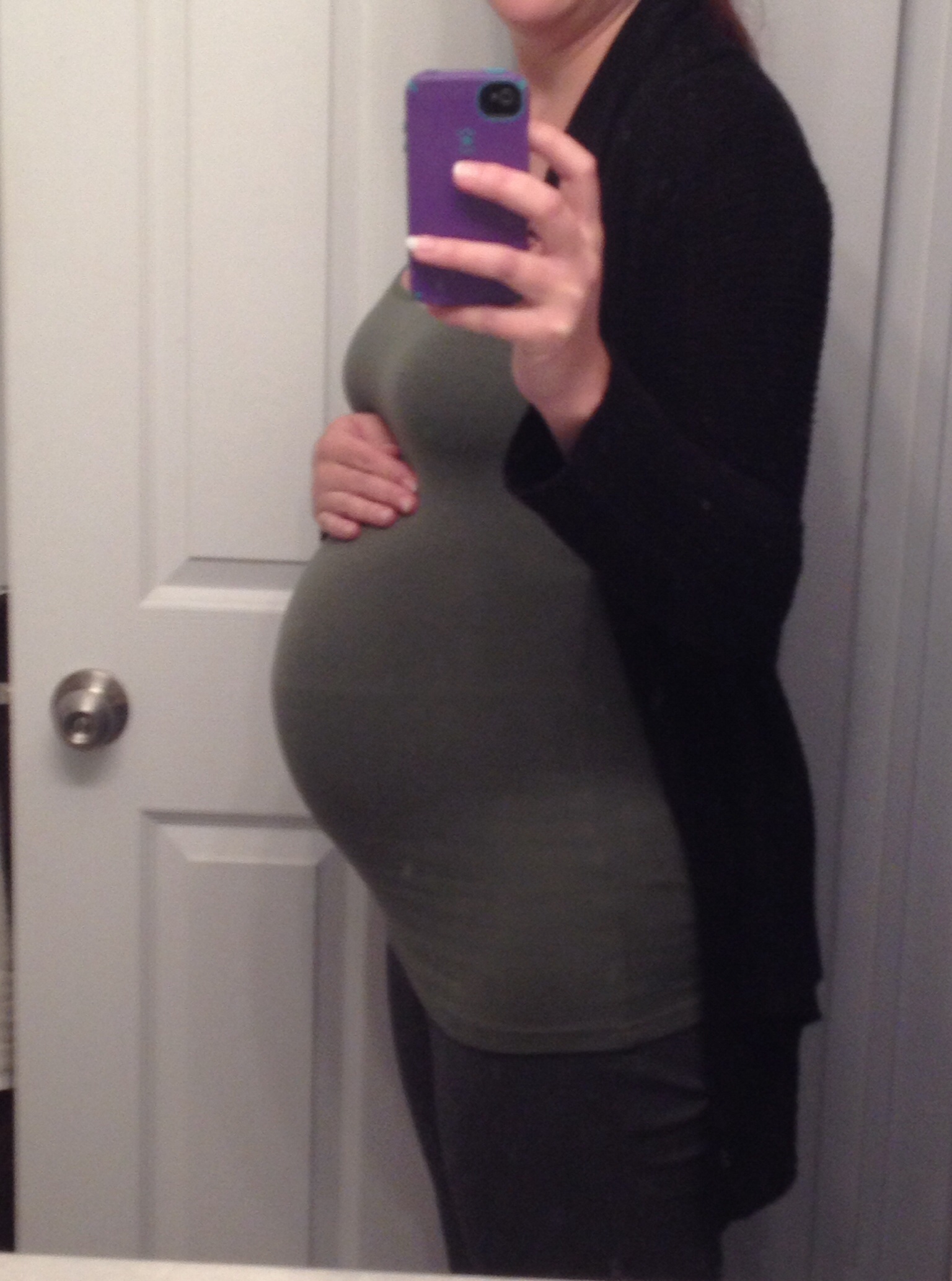 I am 29w5d with my two munchkins! I can't believe how quickly time is moving along here. I had my second shower this past weekend and couldn't be more grateful for how generous our family and friends are, we have been thoroughly spoiled. We are working hard to get the nursery finished and get through our list of things to do around the house, since twins are known to show up early, we want to try and be as prepared as possible! I won't complain much here, but 3rd tri has been a tad rough thus far. I'm just trying to take it easy and listen to my body which is having trouble keeping up right now! I shall leave you with my ever growing bump!