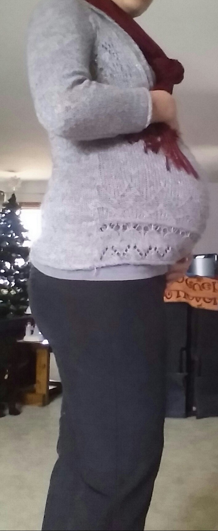 35 weeks! At my appointment last week my blood pressure was elevated and my weight made a drastic jump. Blood work came back good and there was no protein in my urine so hopefully preeclampsia isn't the problem in the future. I've been getting killer migraines when my bp spikes and it takes everything out of me. Last week I was also having 5 contractions per hour for 2 days. OB said to come in if they were 6 or more. They have now settled down quite a bit.