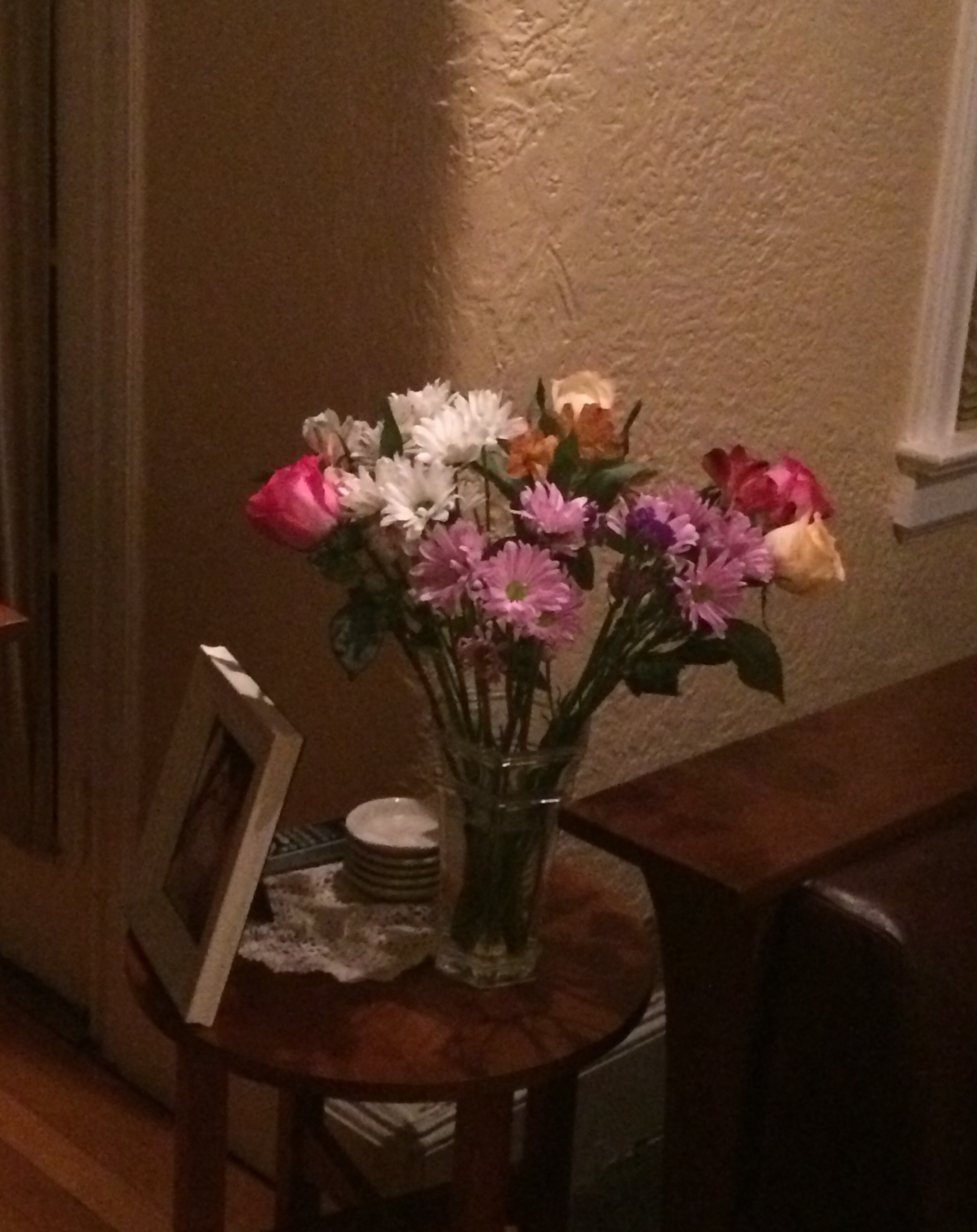 I have to AW my H. We were running errands and he said he had to make one more stop at a shopping complex. I was tired so I just waited in the car. He came out with a bouquet of flowers for me and popcorn so we can have a date night at home tonight. So sweet!!