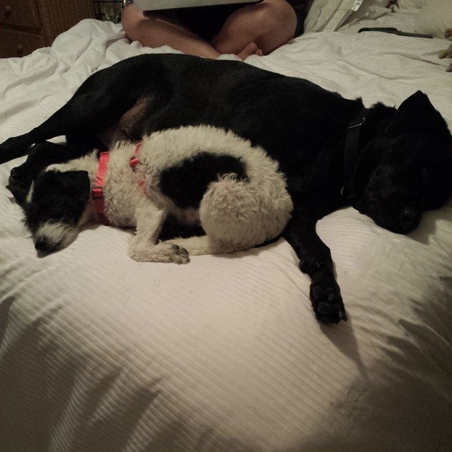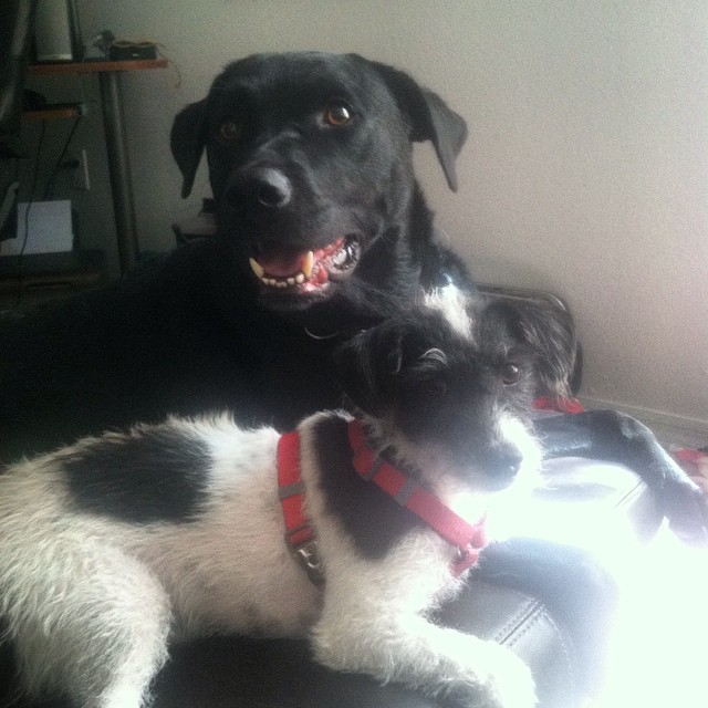 2 dogs, Gabby a chihuahua mix and Rocky a pit? mix