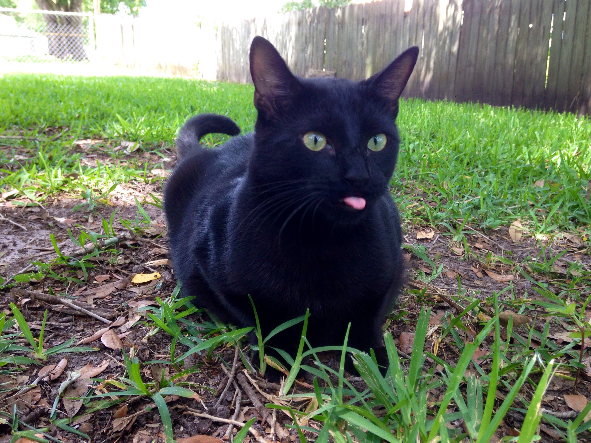 We've got four and a stray... 2 cats: Seymour (black kitty... He's totally my baby. Loves cuddling with me) and Templeton (she's a Siamese looking one and has an obsession with hair ties and twist ties). We've also got two corgis. Jack and Roxy. The stray is a black kitty that is about a year old probably. We moved into our house and a few weeks later she showed up. Super tiny and skinny, like could see every bone. Come to find out she had kittens... Yay... We captured them and her and they lived on our porch for a few months. We got her fixed and ear clipped. Got her vaccinated too. We committed to taking care of her. We had a friend adopt one kitten and the other two we took to the SPCA on Halloween. We couldn't keep taking care of everyone and they kept finding holes in the screen. Anyway, Mama lives on our porch basically... When she's not out hunting. She's really sweet and wants love all the time.