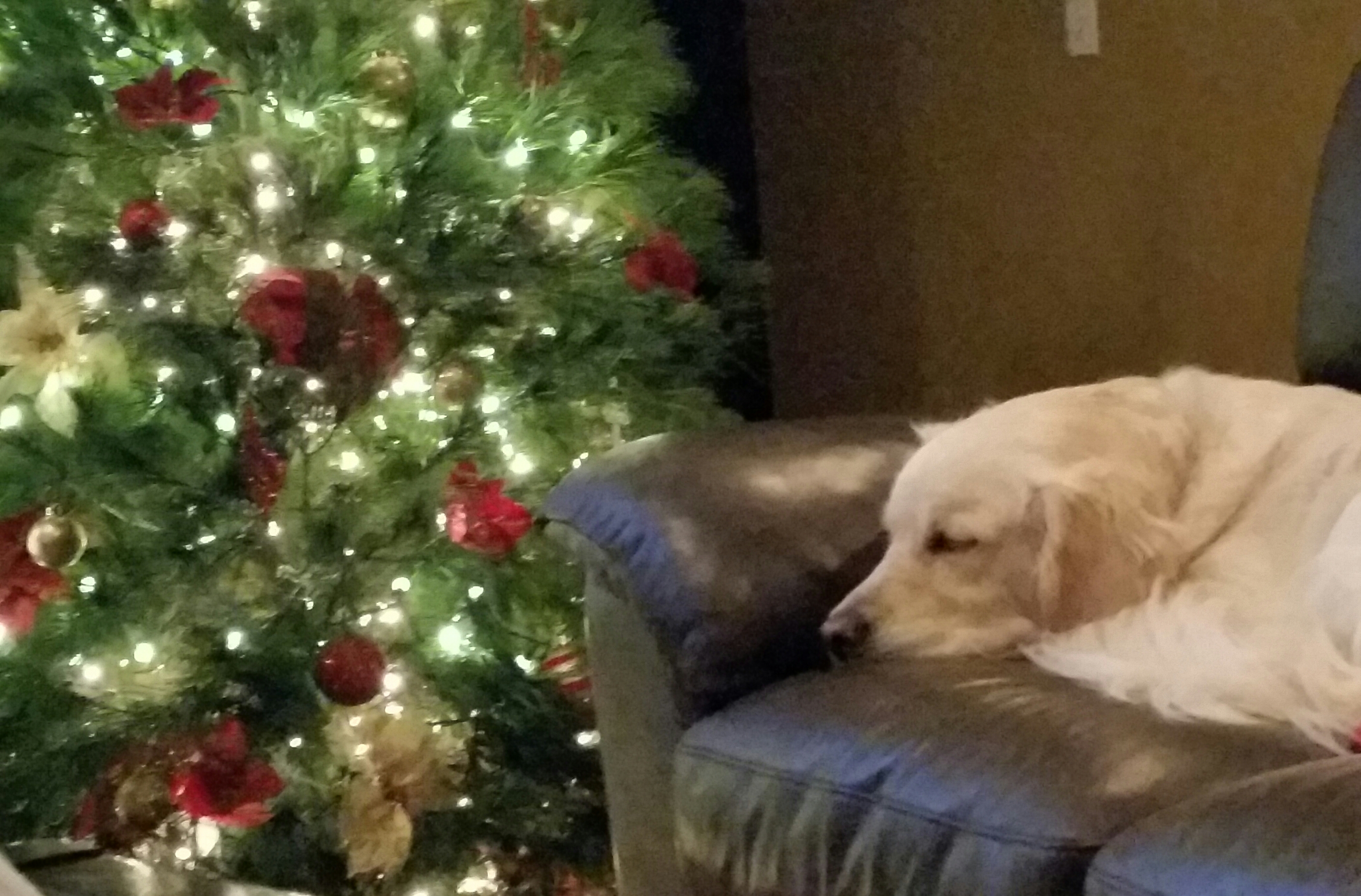 Here are a few... this was our first year with a real tree and I loooove it! The first is the tree without decorations on it yet, and then a shameless photo of my adorable furbaby being cute with the tree.