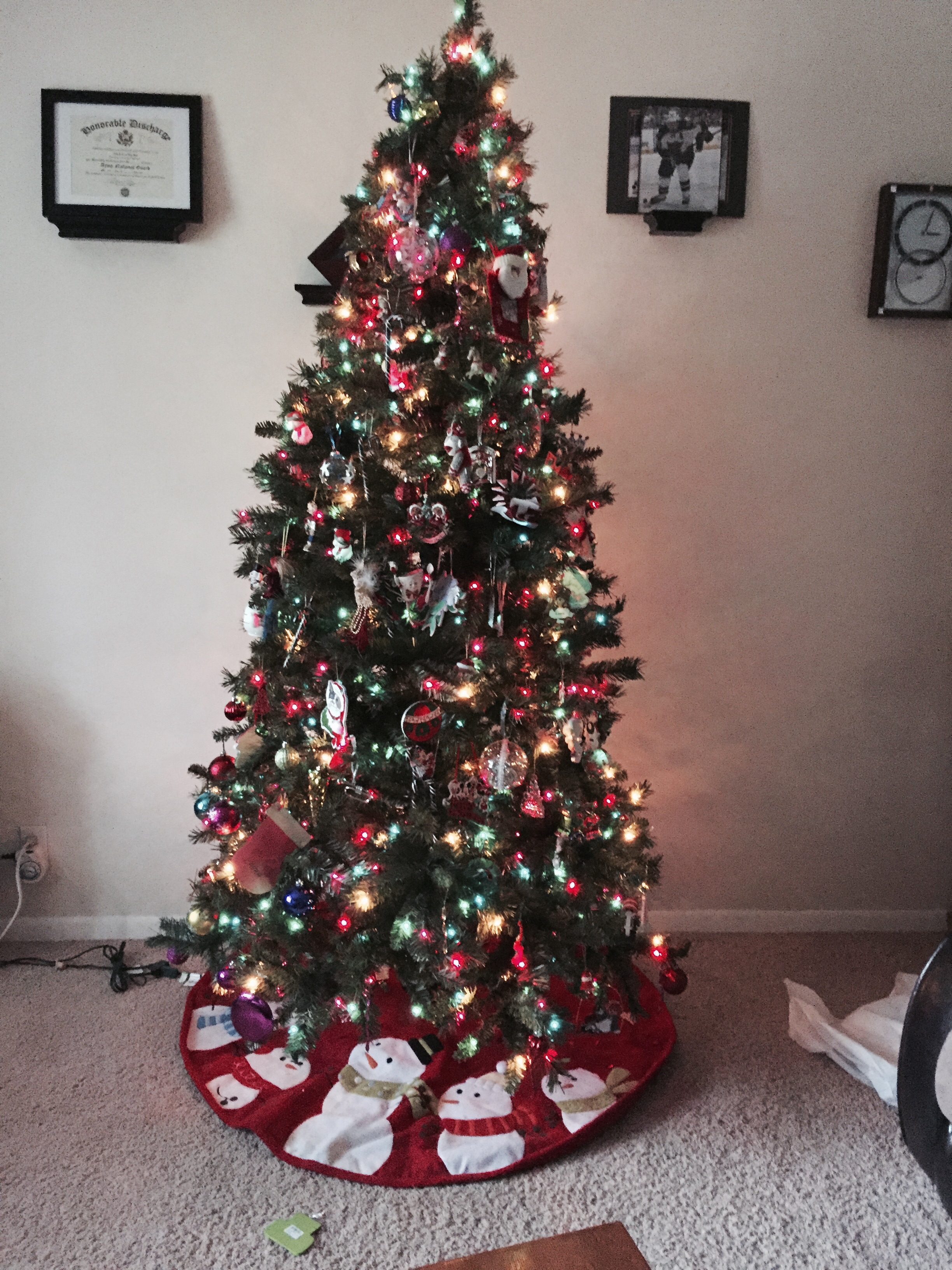 I've made 4 trips to 2 different stores today because I kept not getting enough of something; garland, lights, candy canes, etc. But, our tree is finally up, decorated evenly (as possible), and finished. This is my fiancé and I's first tree since we've both moved out so we're working on collecting meaningful ornaments throughout the years.