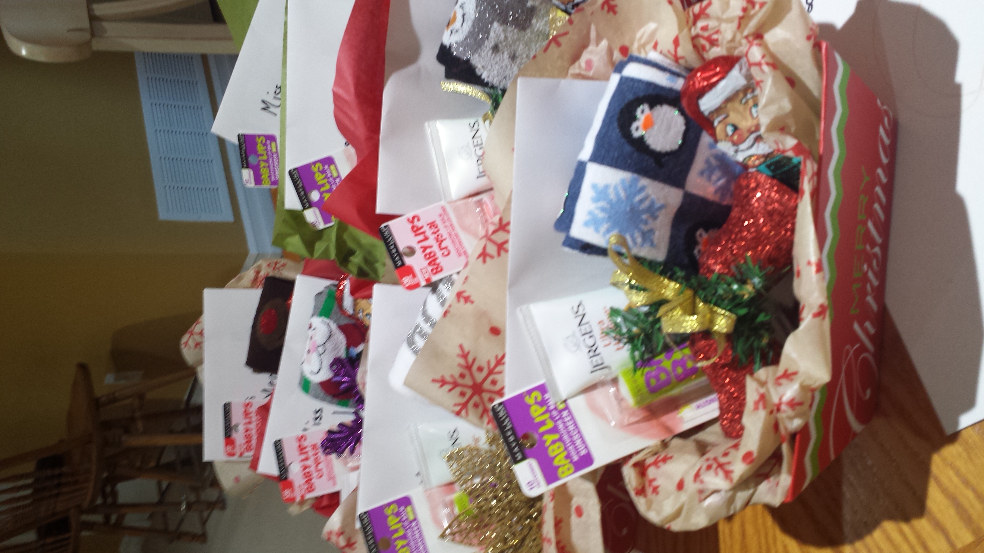 • Wanted to show you what I decided to give. I did the 2 girls at the front desk, director, 2 teachers, and 2 class aides. I gave a wawa gift card for coffee, cute holiday socks, small lotion, chapstick, chocolate and small ornament. I also wrote nice note to each person. I think it looks cute I am going to give them out this afternoon. Thanks for your help!