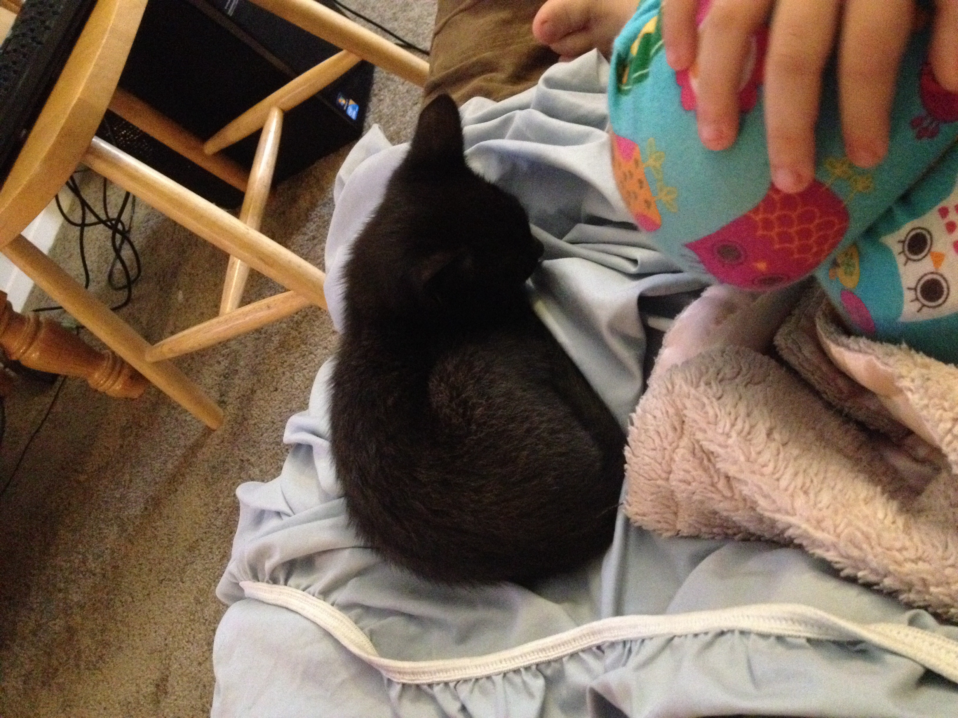 Oh do I know that feeling! My mom and I found 3 kittens outside a couple years and I took them home. My own kitty and H were not amused at all. Neither was my really good friend, who housed the kittens for me until we found them homes. He's a dog person.