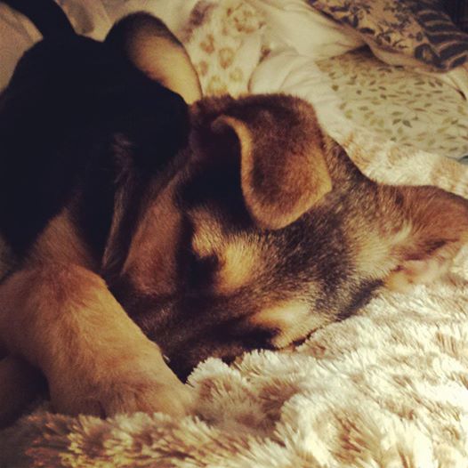 When DH is out of town and DD is at her dad's (like last night) I let our 50lb puppy sleep in our bed instead of the crate. He usually sleeps at my feet but last night made a point to be by my side and touching me all night. He would circle and almost sit on me and rest. He's a big, goofy sweetheart.