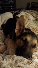 Our GSD Mix barks until I invite him up for snuggles. Little brat. I can't go to the bathroom without him sitting right in front of me, and 2 days ago he got in the shower with me. Granted, I wouldn't leave him alone for the first week or so, but I blame his squishy little face and bat ears.