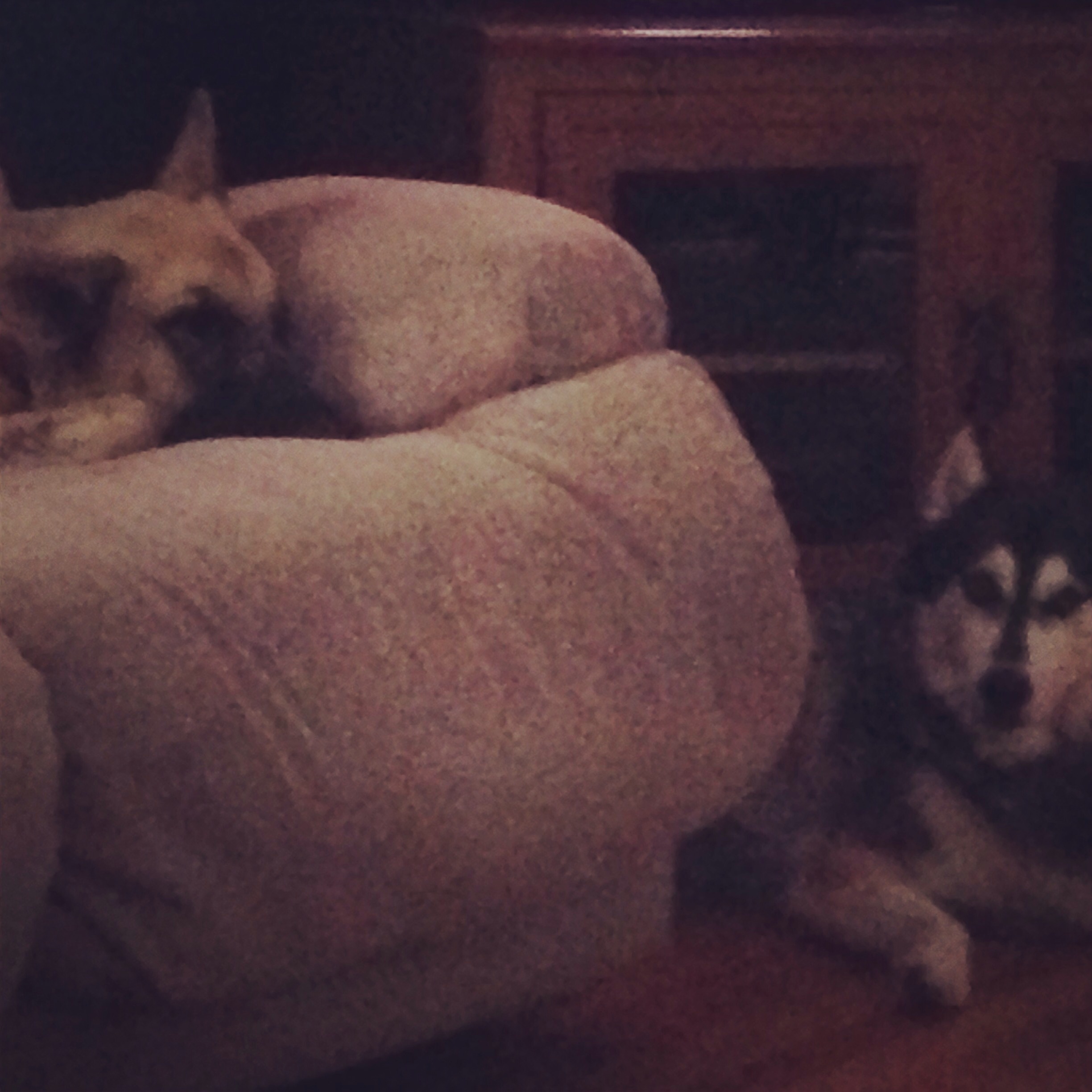 This is Hinson: the lab mix, Molly: the Brittany, and Maggie: the chihuahua.