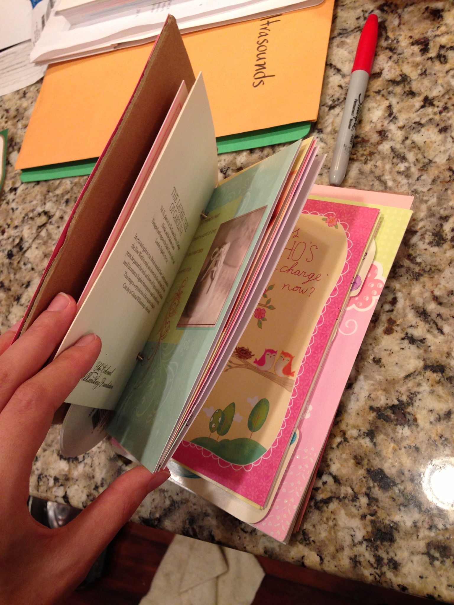 • Just made this little book from all of baby girl's shower cards. Call me a pack rat but I can't stand throwing cards away. They're just really sentimental to me. Lol.