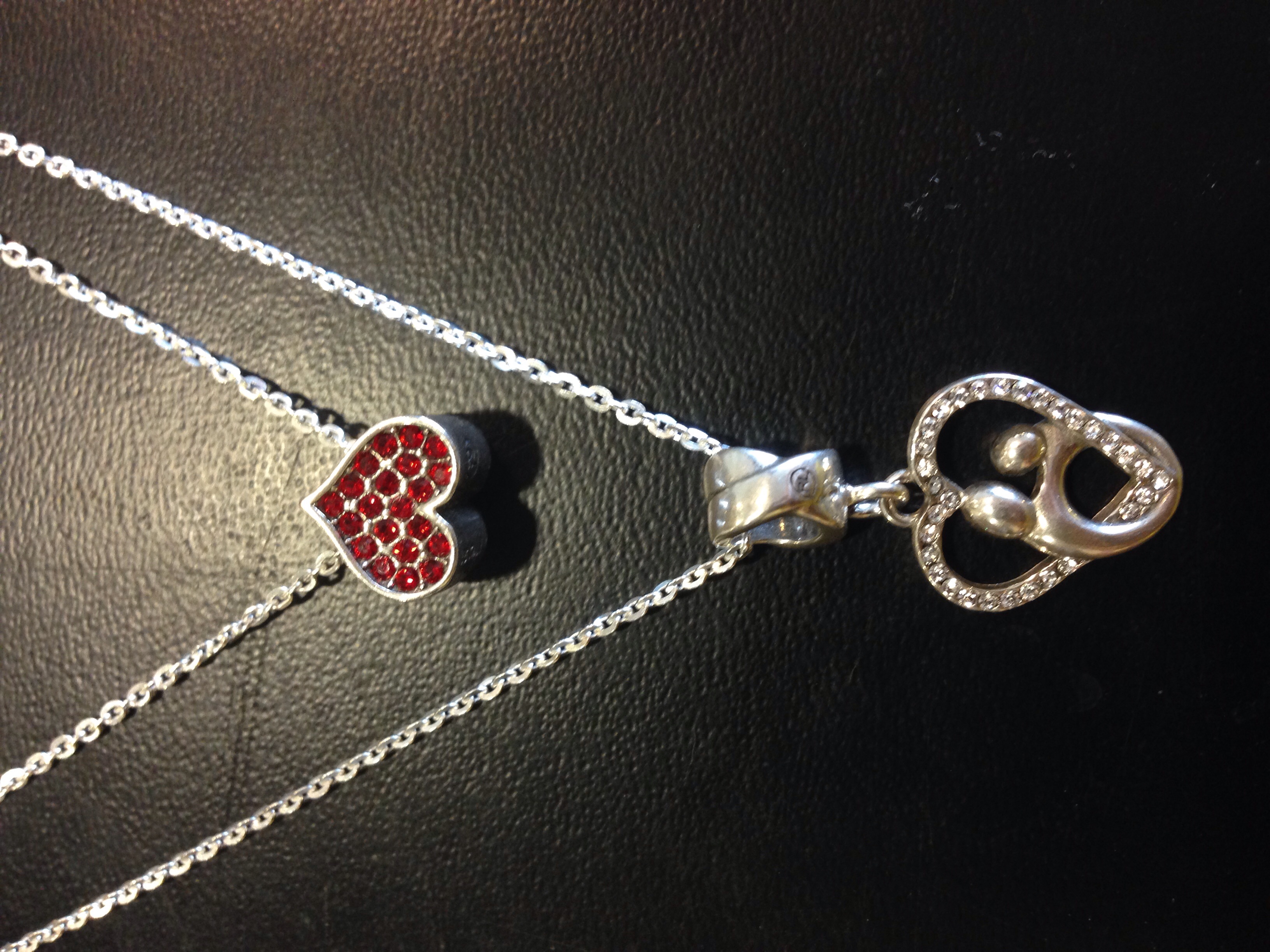 I'm also happier now that I finally went and got my necklace that symbolizes this journey. The heart kept falling upside down and I thought I might exchange it for a different charm. But then it started to grow on me... It's like a "broken" heart since it keeps falling upside down. And now I think I love it. I also think the double chain necklace is so cool... It adds an interesting layer. The bottom heart has a mother and child inside it.