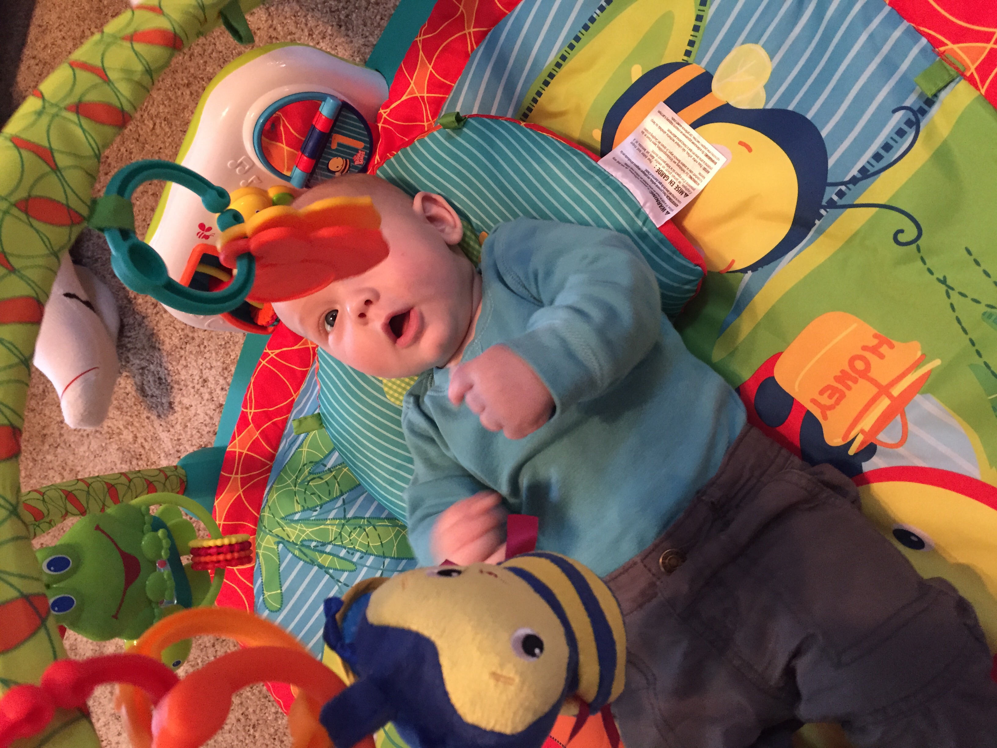 We got a cool floor play mat from H's parents and he got a jumper from mine. He's pretty thrilled with both!