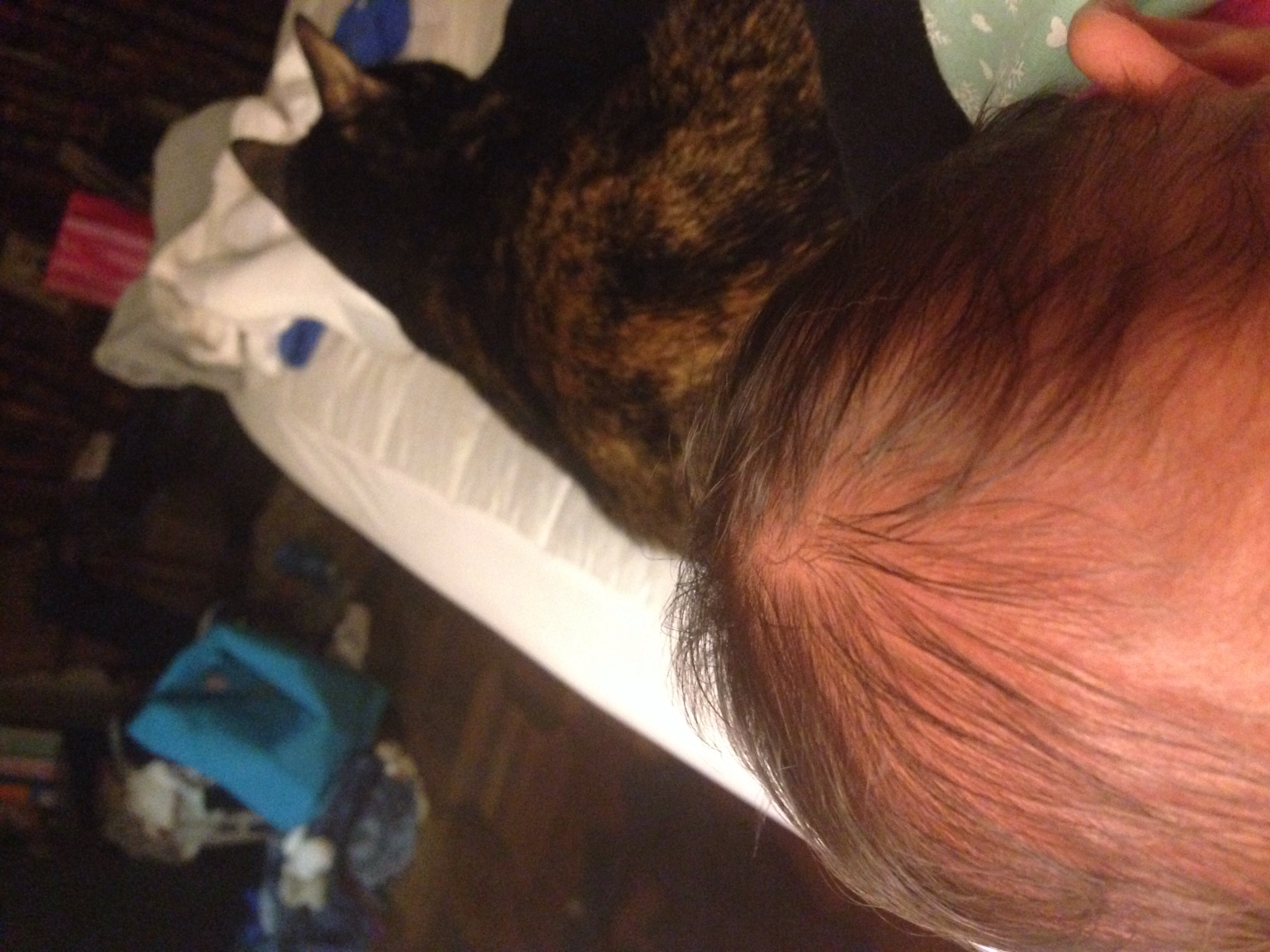 My cat is as loving as she's always been, but getting older. I'm afraid she's not going to adjust as well this time. She's all over me though. I've heard dogs have that instinct though. A friend of mine came down with HELLP and her dog was acting really strange/protective that day.