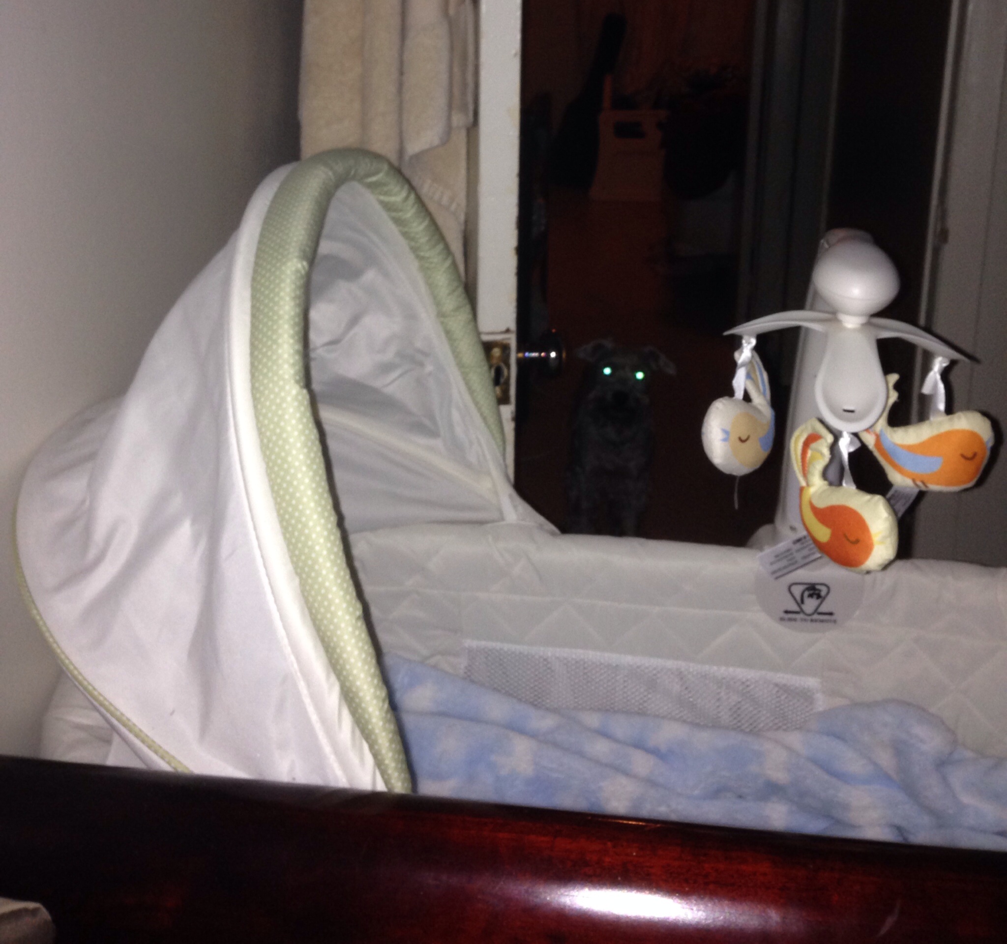 Me three. We have 2 cats and a dog (lab). Our cats are not going to be happy when they can't sleep with us. My dog has always been cuddly, so he is just his usual. I will say that right before we found out I was pregnant, he stood in front of me and stared for a solid 5 minutes. It was weird, but I think he knew before we did.