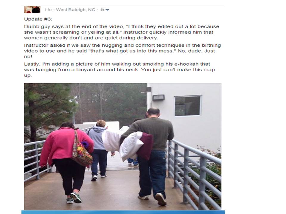 Okay, I have so many updates from the birthing class. The idiot guy in our class was the worst! I updated my friends through Facebook and here are the pictures of those updates.