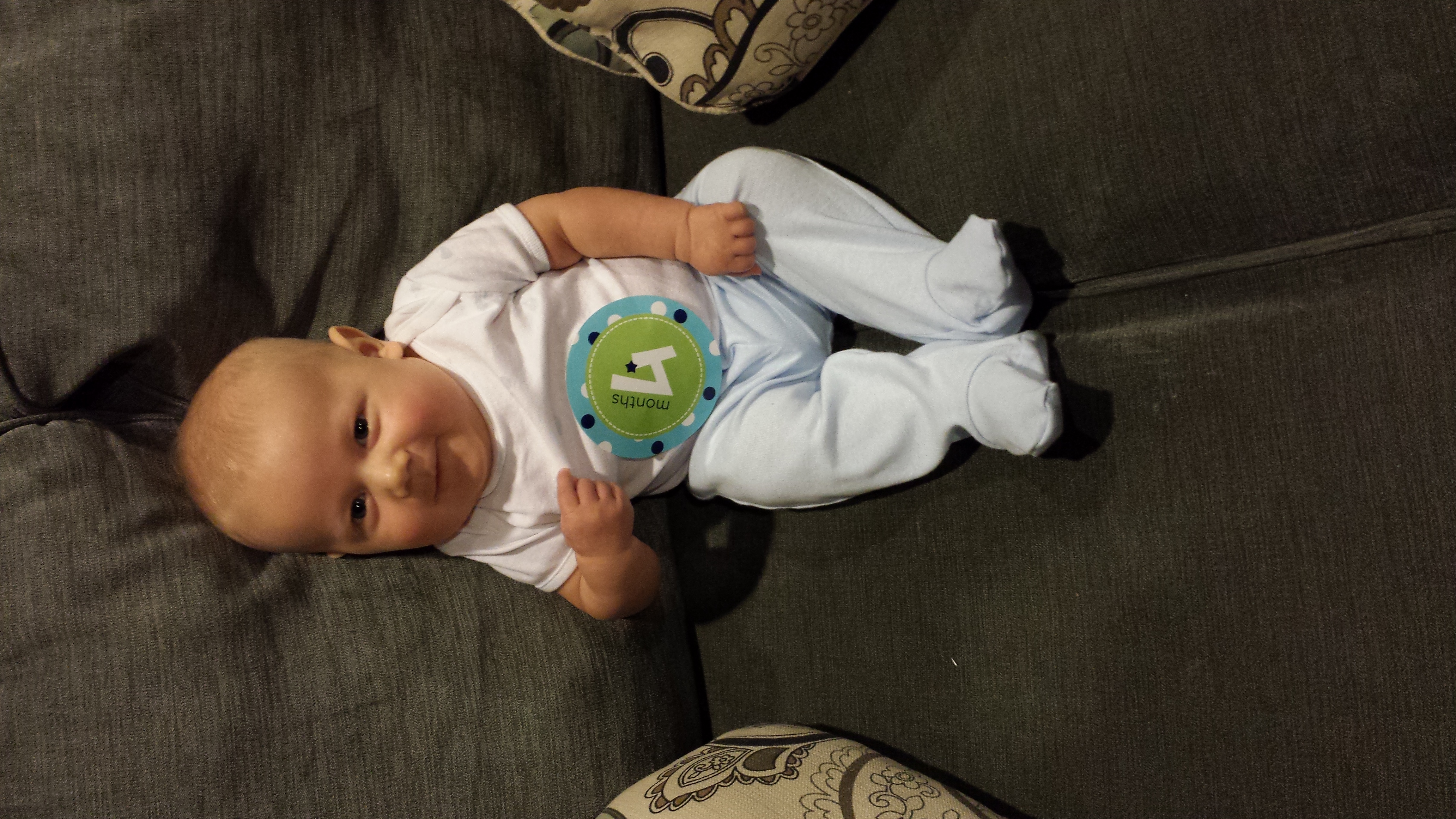 Took me forever to find this on my phone! I'm a little late but he just had his four month checkup today! My chunky monkey is 19.10lbs and 26.5in!!!!
