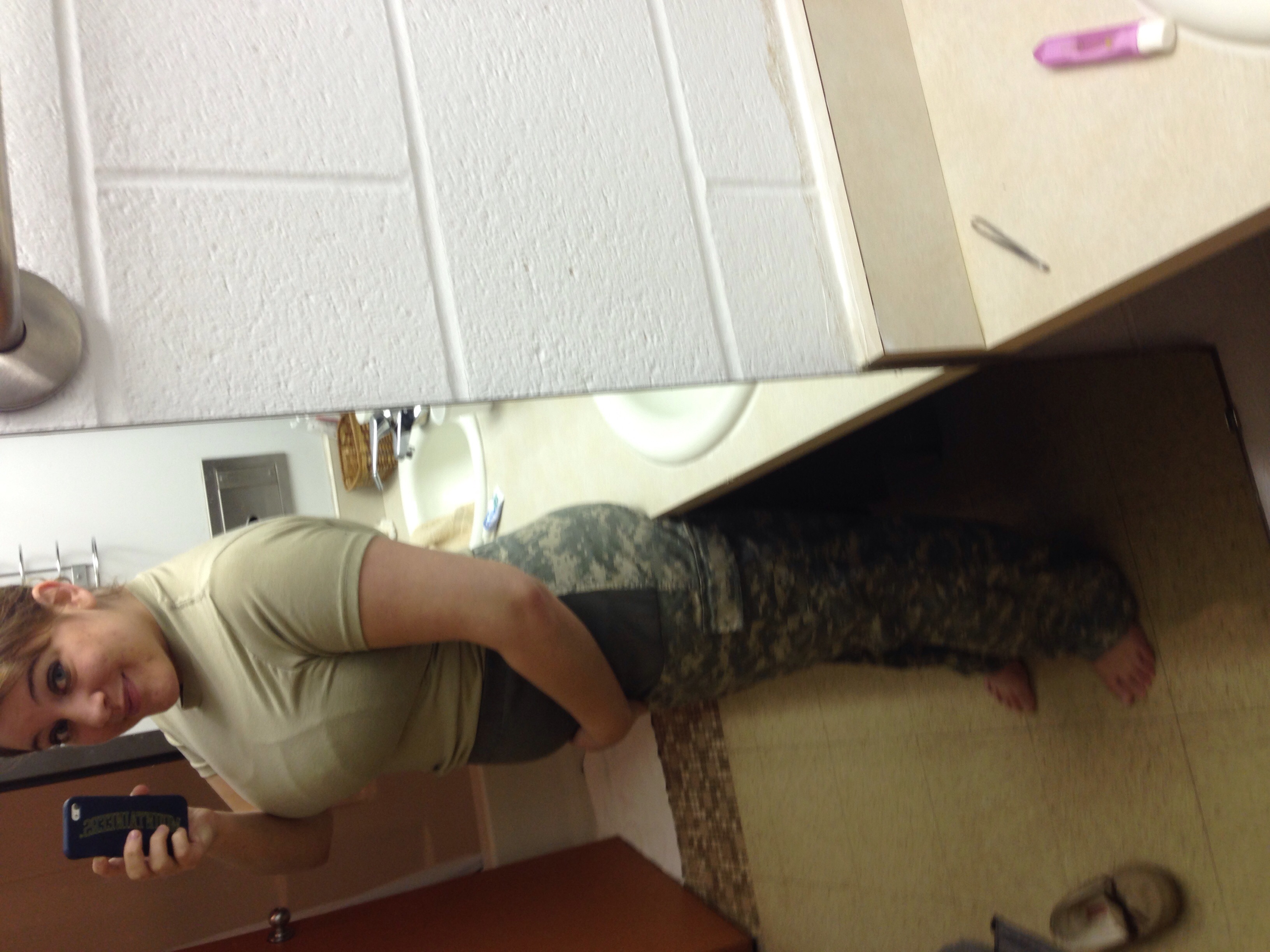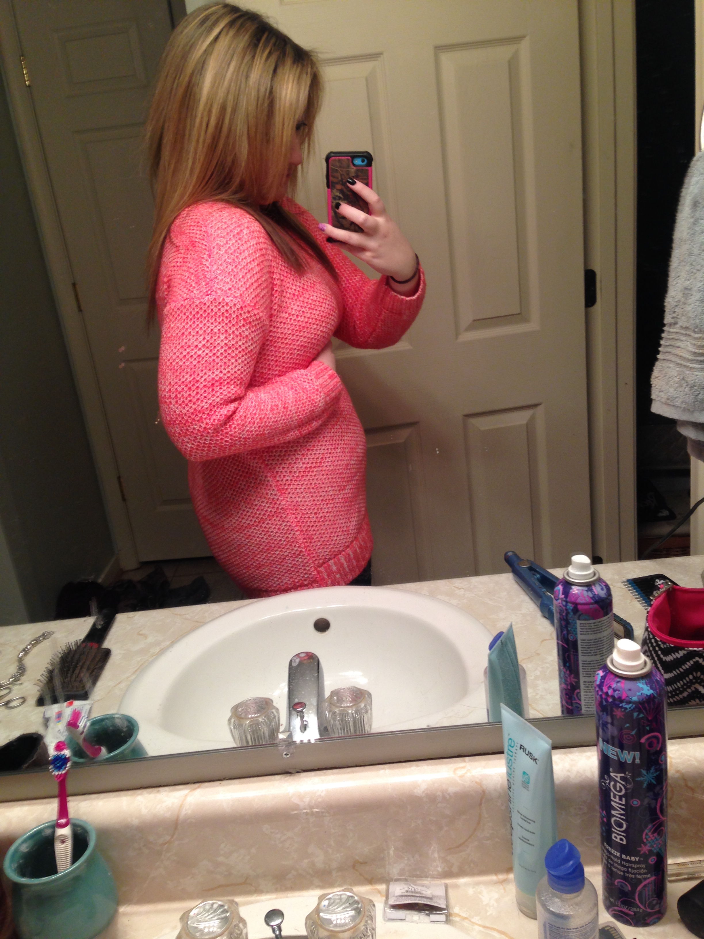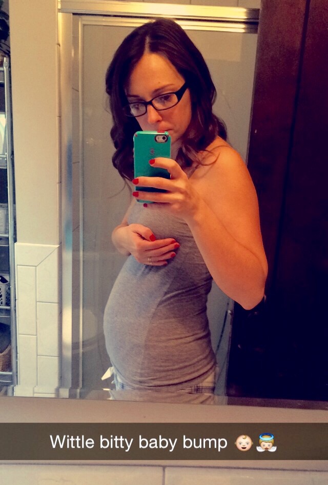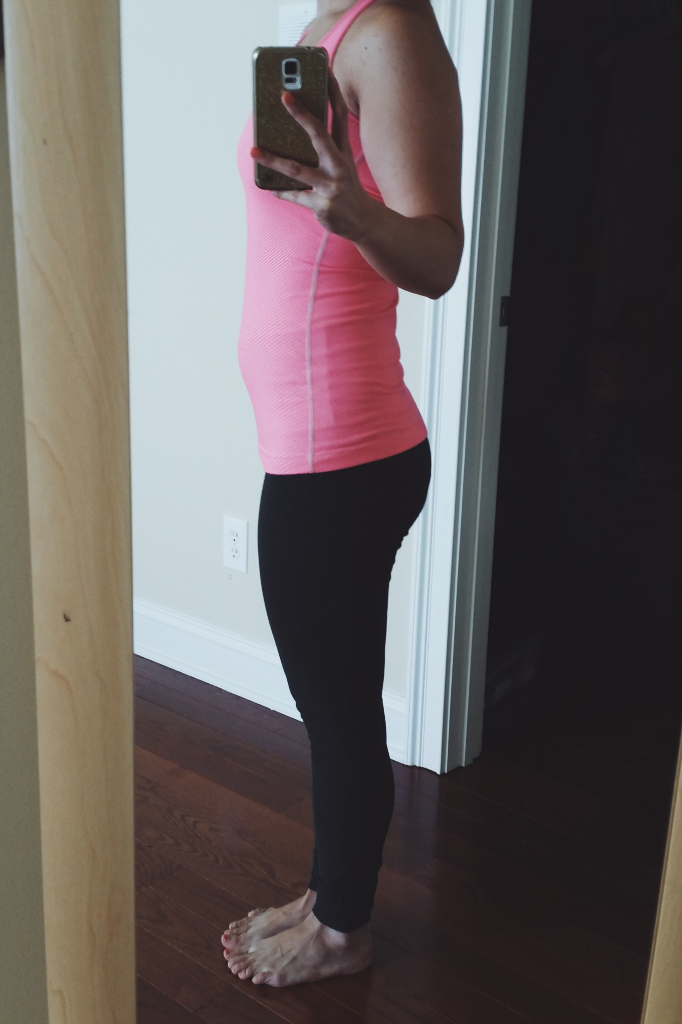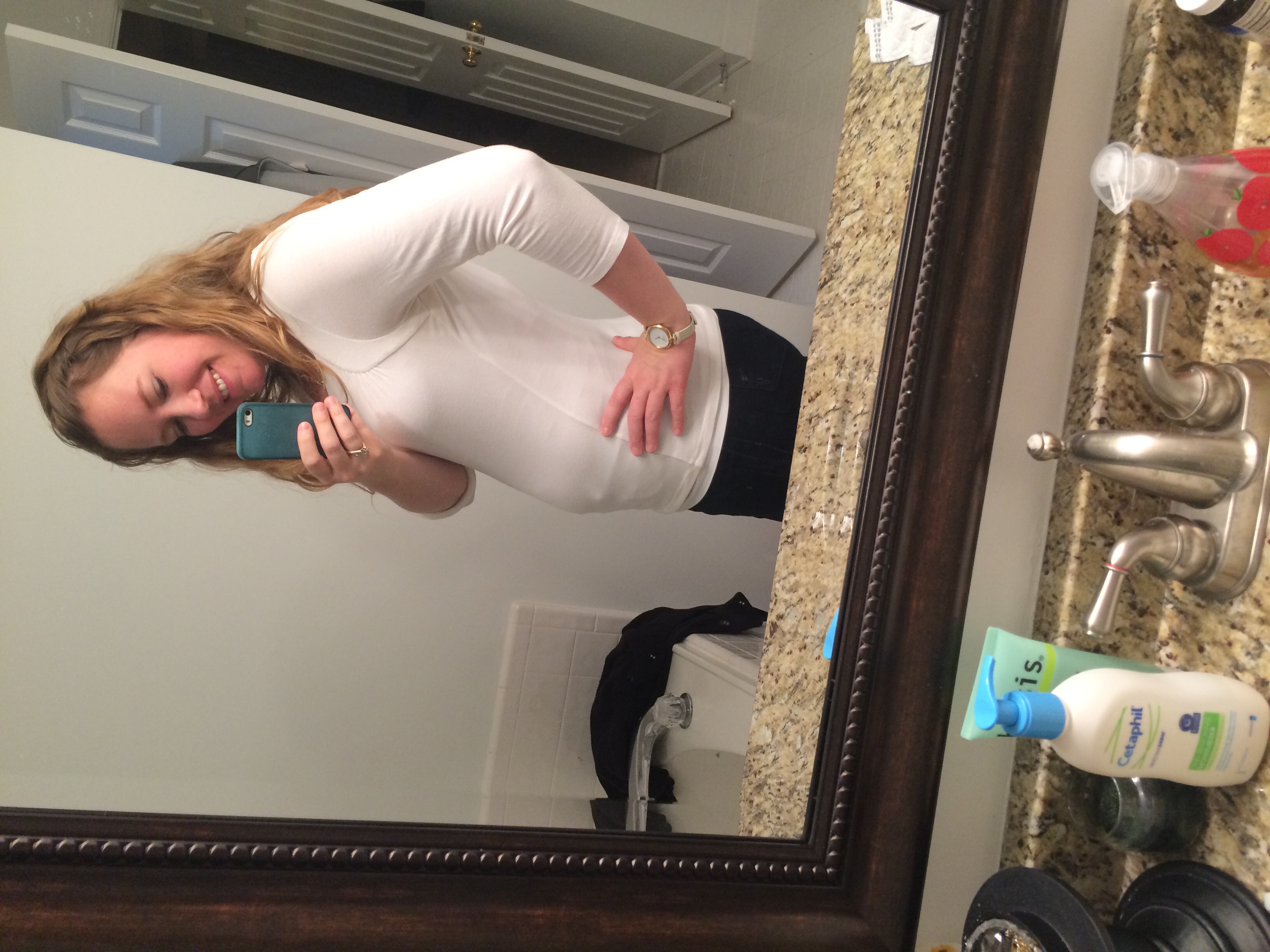 Took my first bump photo today at 14 weeks... I feel like any earlier it was just flub. Snapped this right when I woke up, before bloat could happen.