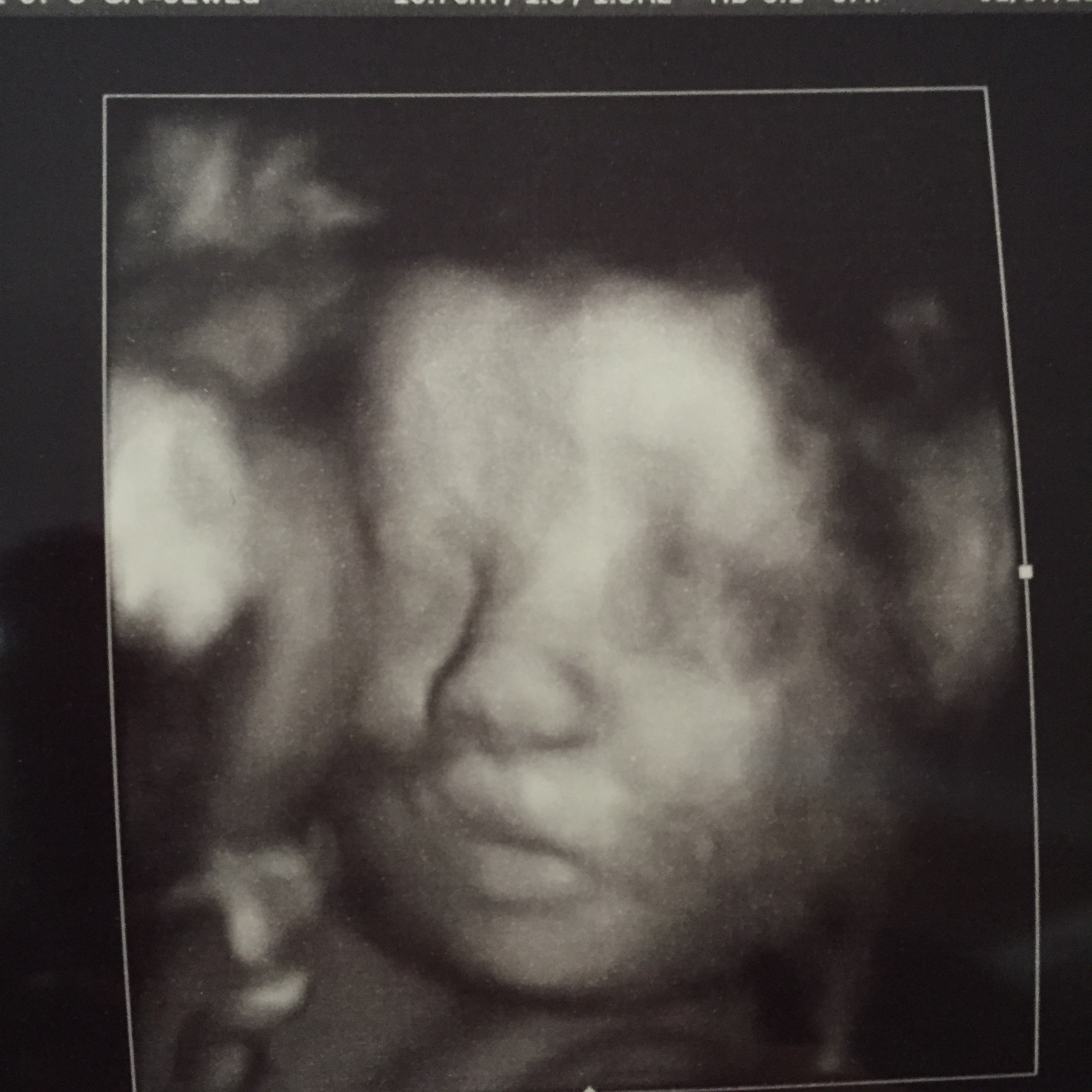 Had my 32 week check up and follow up ultrasound. Baby boy is almost 4 lbs and adorable. He was opening and closing his mouth, which was the cutest thing ever! He's right on track where he should be and the cp cyst is gone! Heartbeat was 147.