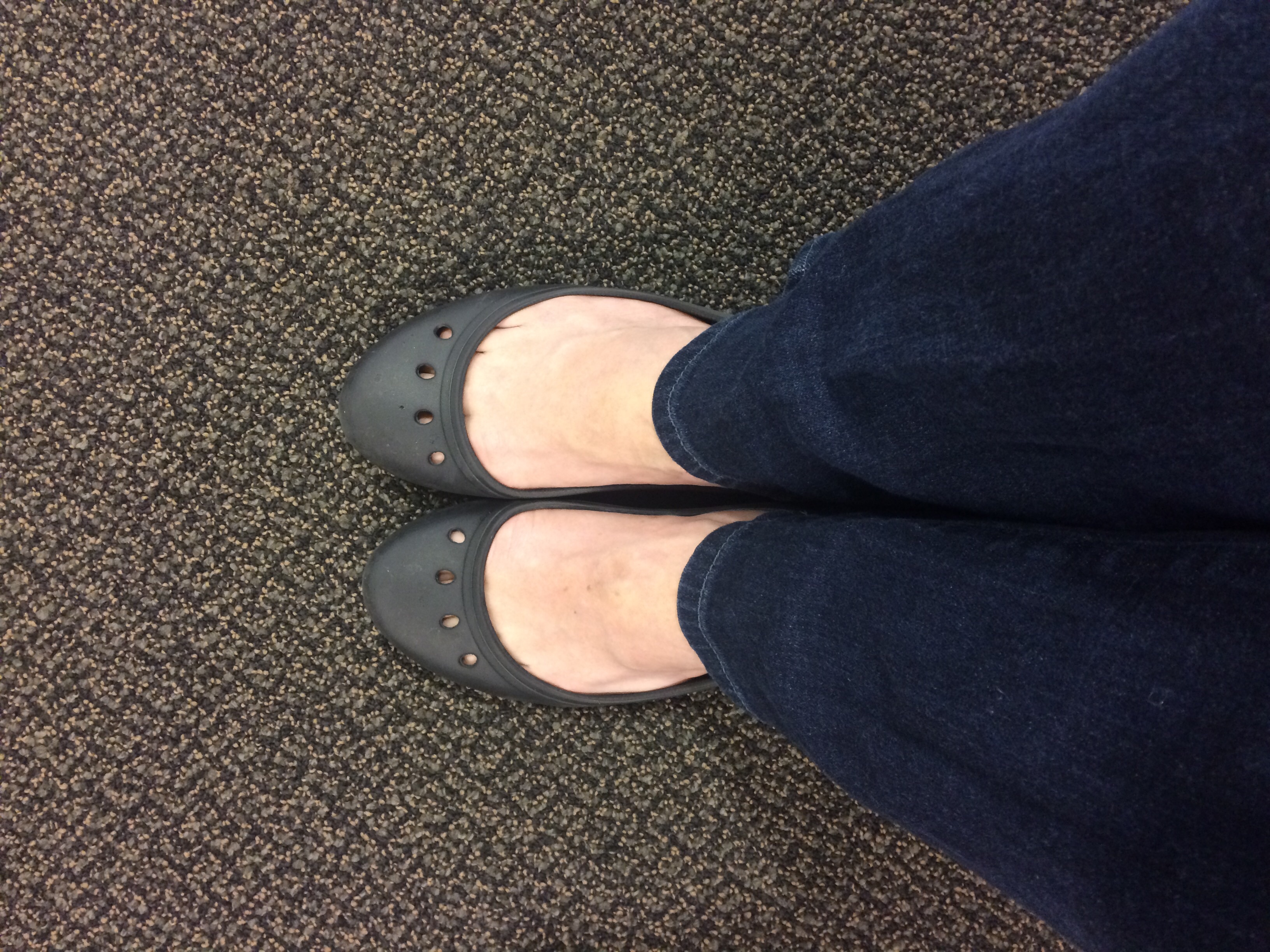 I'm wearing my running shoes at work (not acceptable) But I don't care - cause my back hurts and I need more support that my flats can give. I am seriously considering black Crocs for the remainder of this pregnancy.