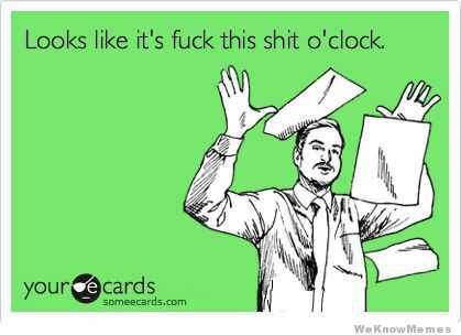 So I was right about the coffee being an omen for my day. I can only get laid if my clients are here to bill. So THANK YOU parents who are taking your kids out of school early WITHOUT INFORMING THE SCHOOL so that I drive 20 miles to work 2.5 HOURS. Fuck you very fucking much. I am so frustrated. I could have stayed in bed. I would have liked to stay in bed because I slept like shit last night.