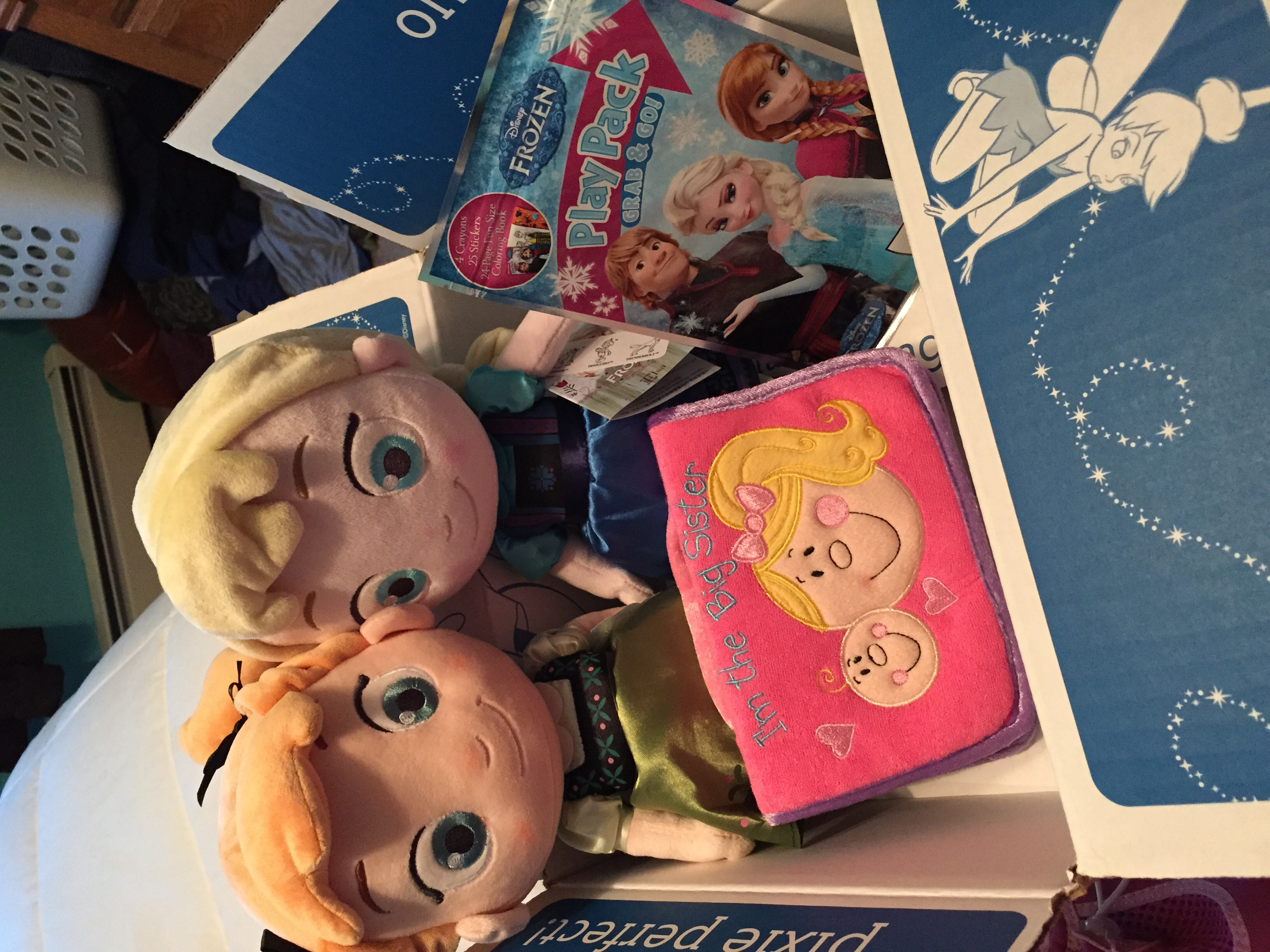 DD is "Frozen" obsessed so we went with the Toddler Anna & Toddler Elsa dolls. Also the PlayPack is a fun little thing for her to use while she visits me at the hospital. And the photo album is adorable in person - meant for a toddler with it's soft sides and pliable pages. I slipped an u/s pic in and we will add more once the baby is here.