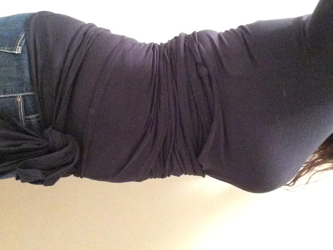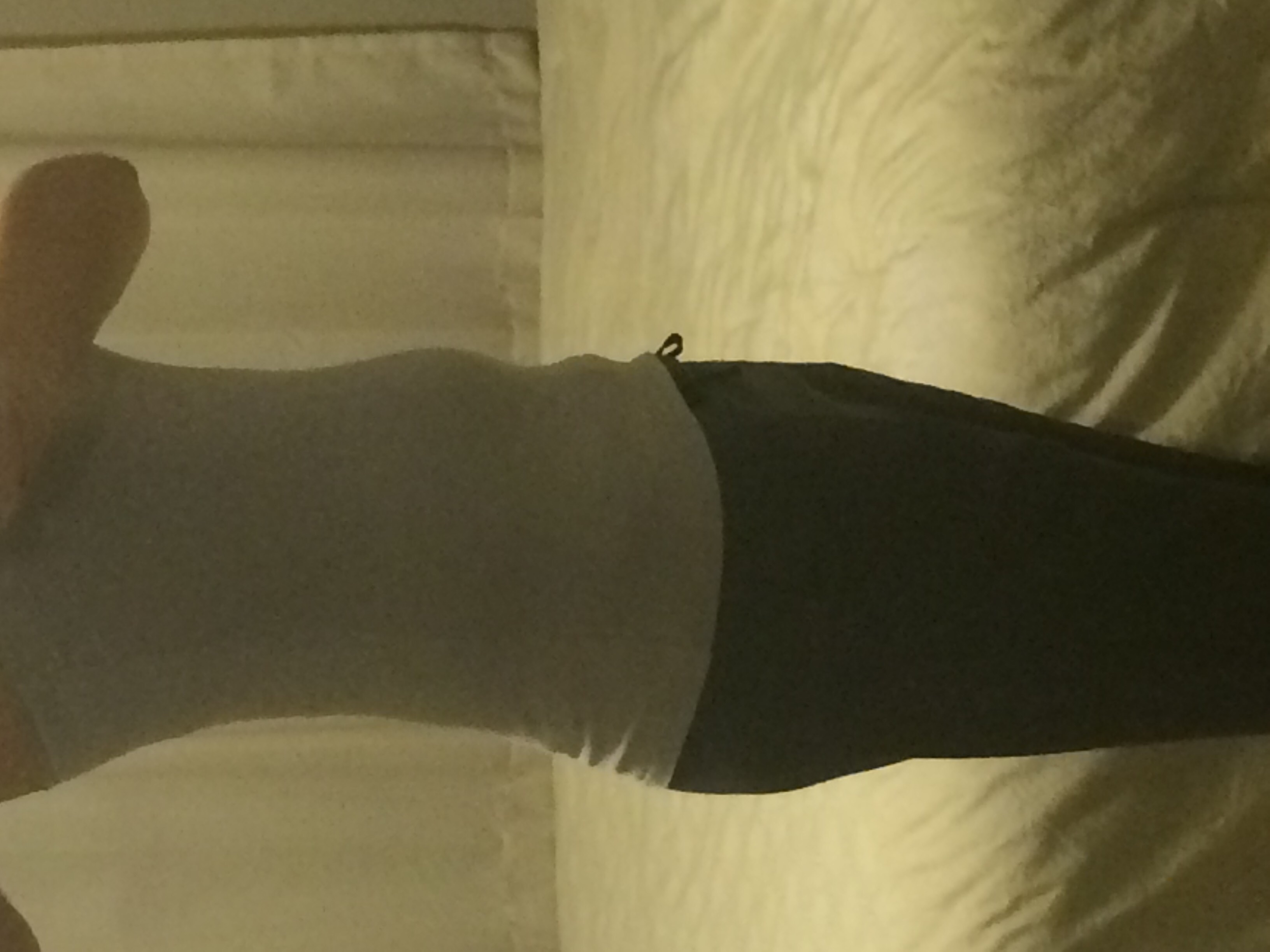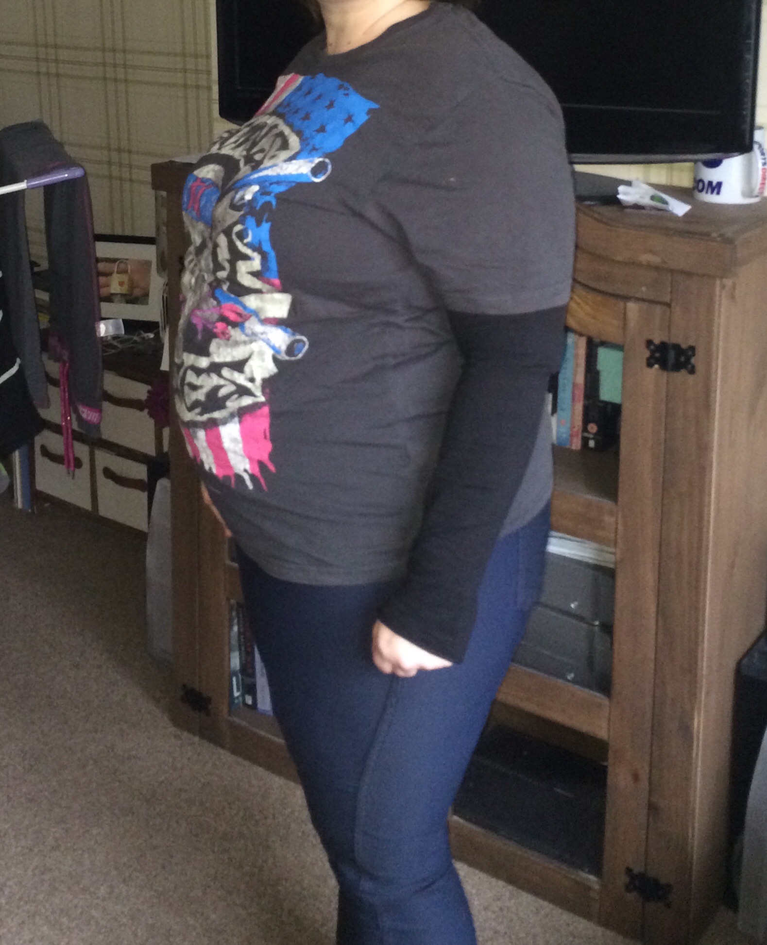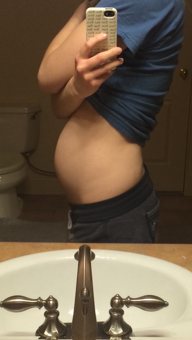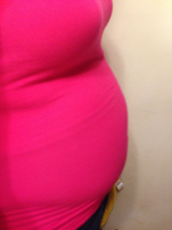 Excuse me looking a mess. I just got finished working out. Not too much of a bump. I can still disguise in my regular clothes..