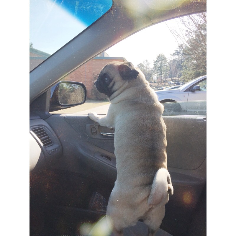 Here's our fur baby Artie riding with me to pick up our daughter from school.