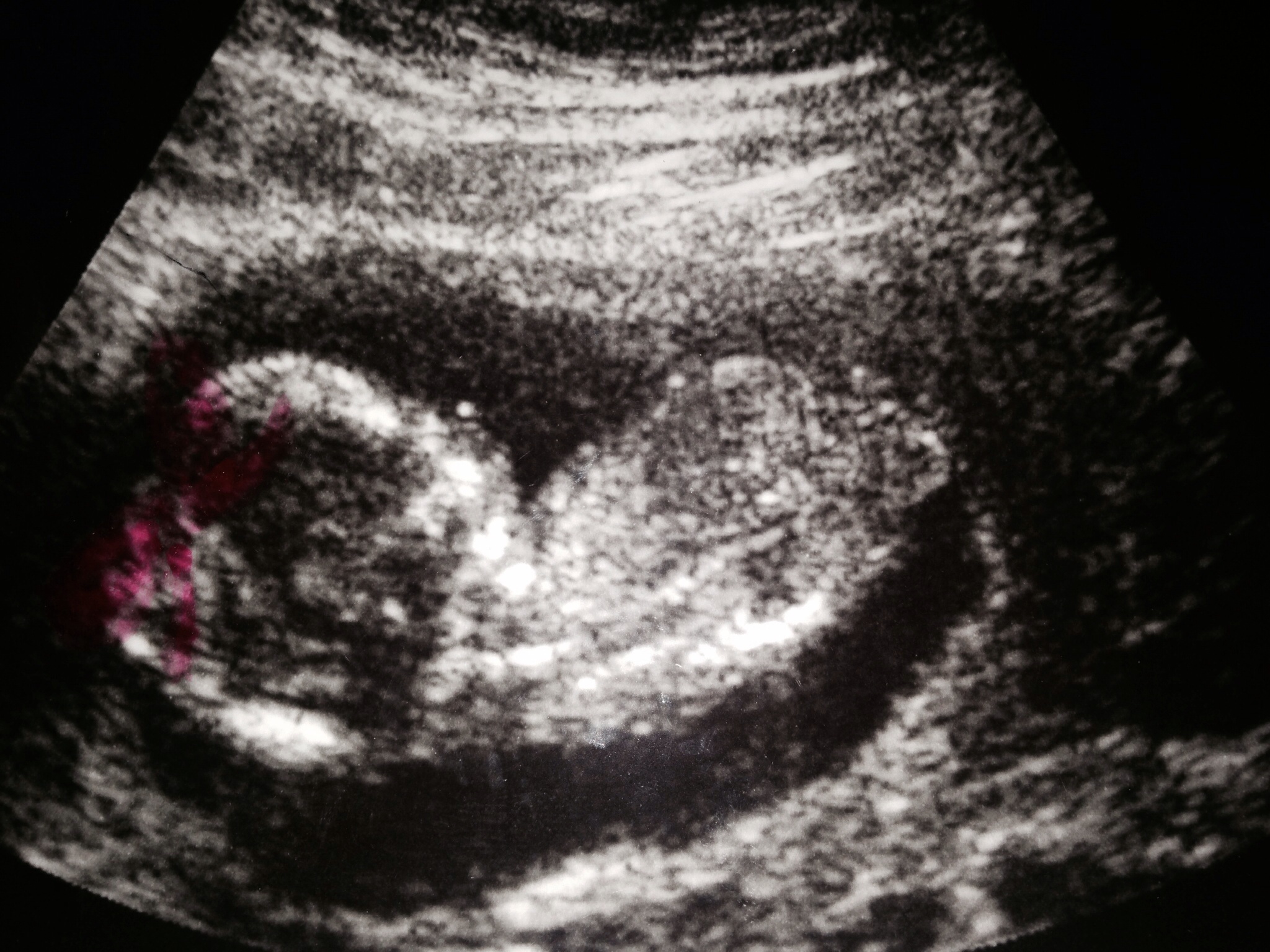 It's a GIRL and let me tell you, little missy didn't want to cooperate. She was too comfortable sleeping curled up against the placenta to show us her face or really anything other than her back. But she moved for a quick second and the ultrasound tech got a good shot. We're so excited!