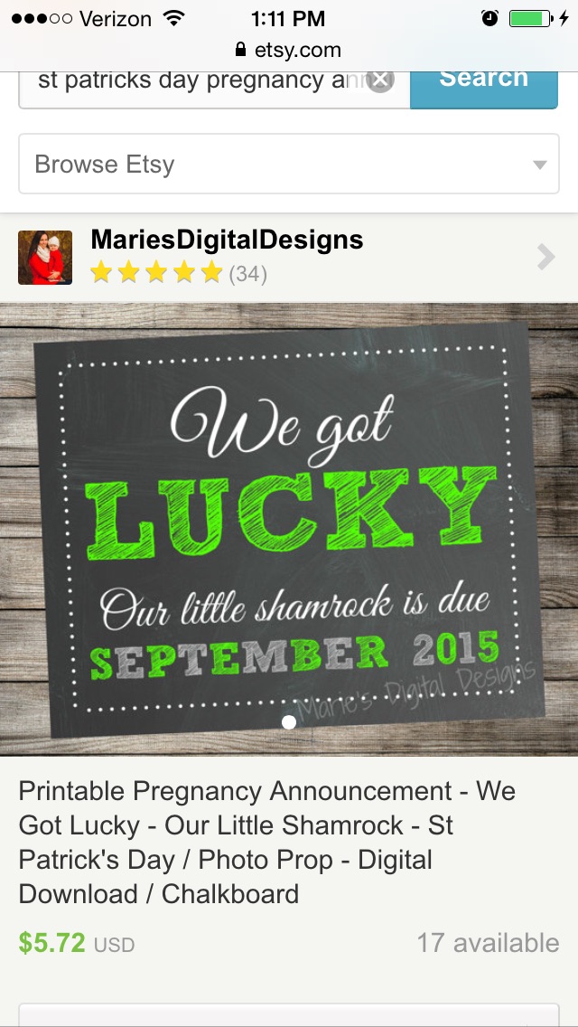 Ordering ours off the internet (Etsy) and will add our ultrasound once we do that on Tuesday. It only seemed fitting since I'm Scott/Irish. I'll post on FB as Well as send to relatives. My grandparents will lose it if they don't get a physical copy