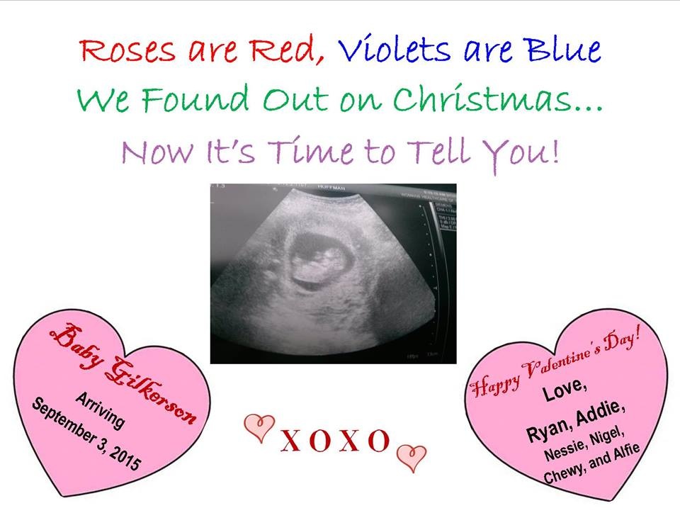 Roses are red, violets are blue, sometime in September baby number two is due!