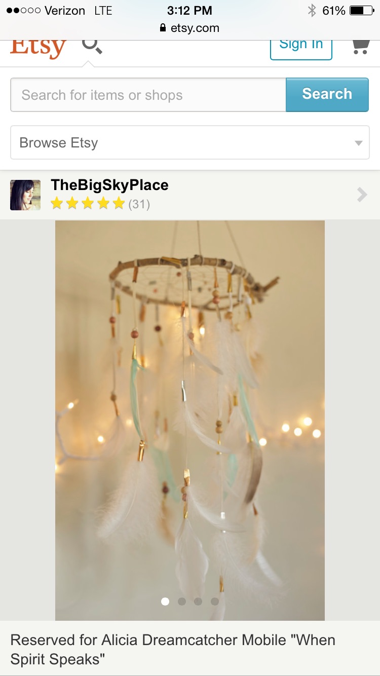 I also ordered a dream catcher mobile from the same etsy shop!!! She does such amazing work, it was definitely a splurge but I LOVE it. I can't wait for the tepee I ordered off etsy to arrive.