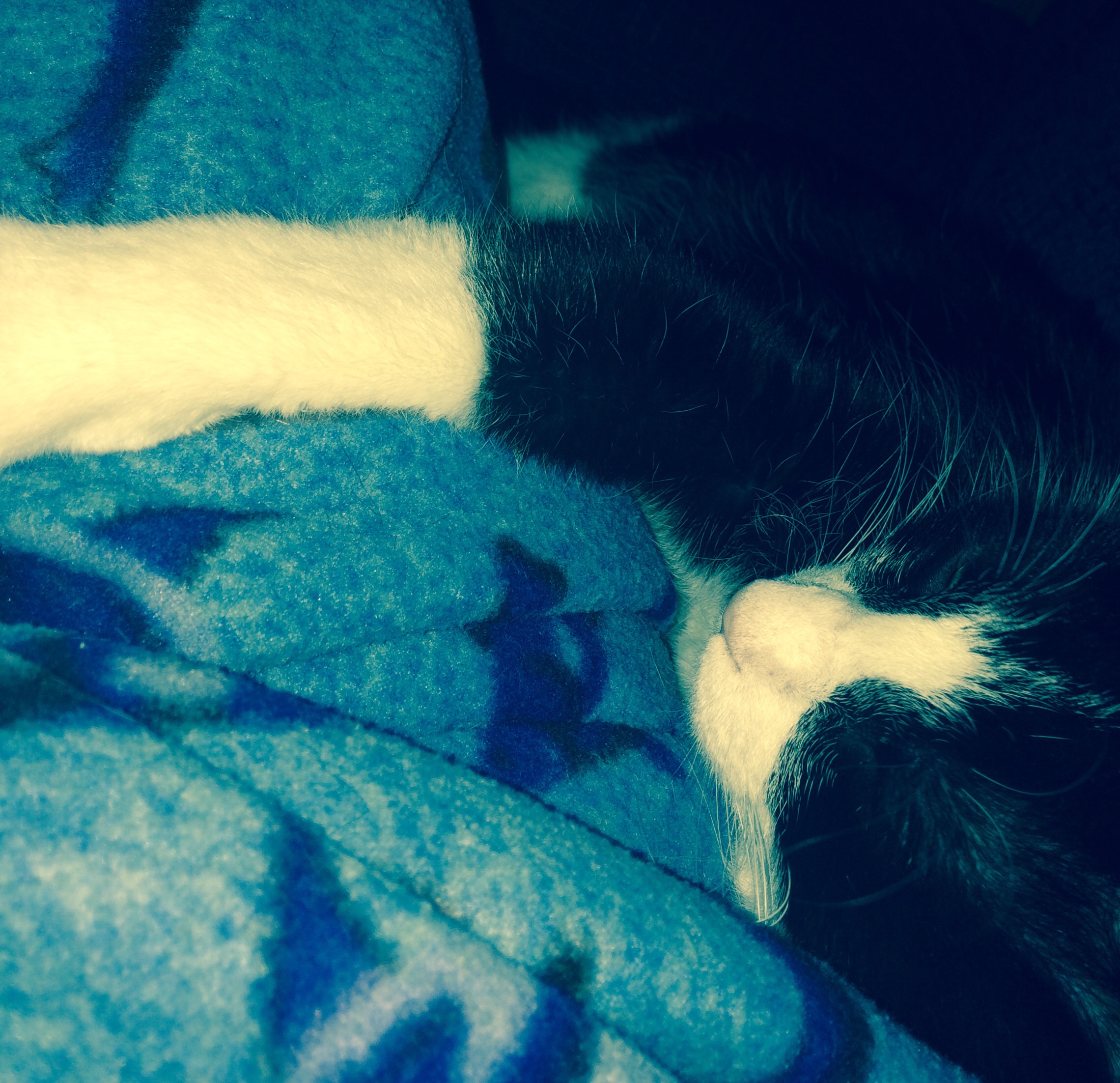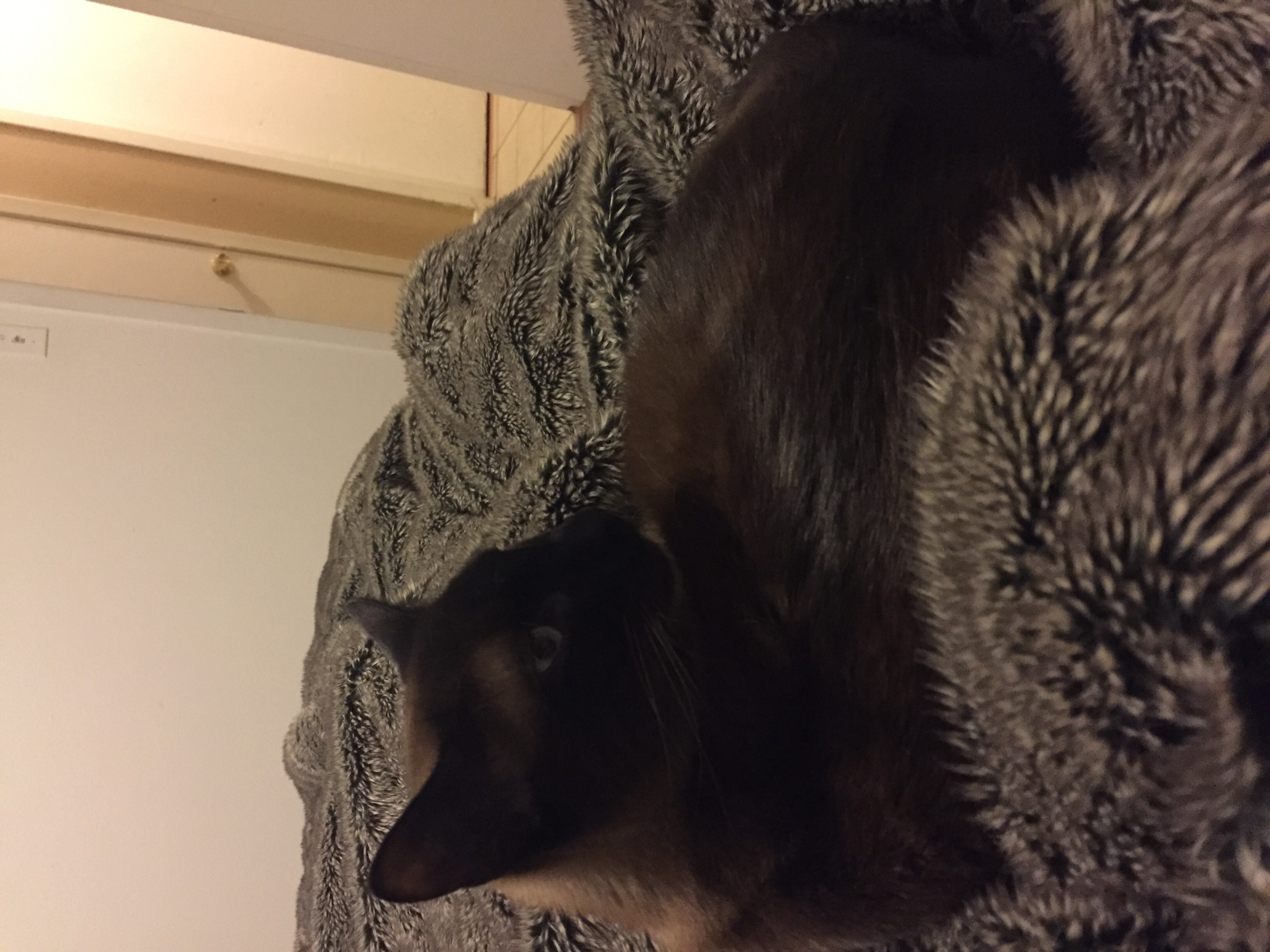 • My grumpy cat, raji has never been cuddly.... He bites when touched half the time. But he's Laying here purring today. :)