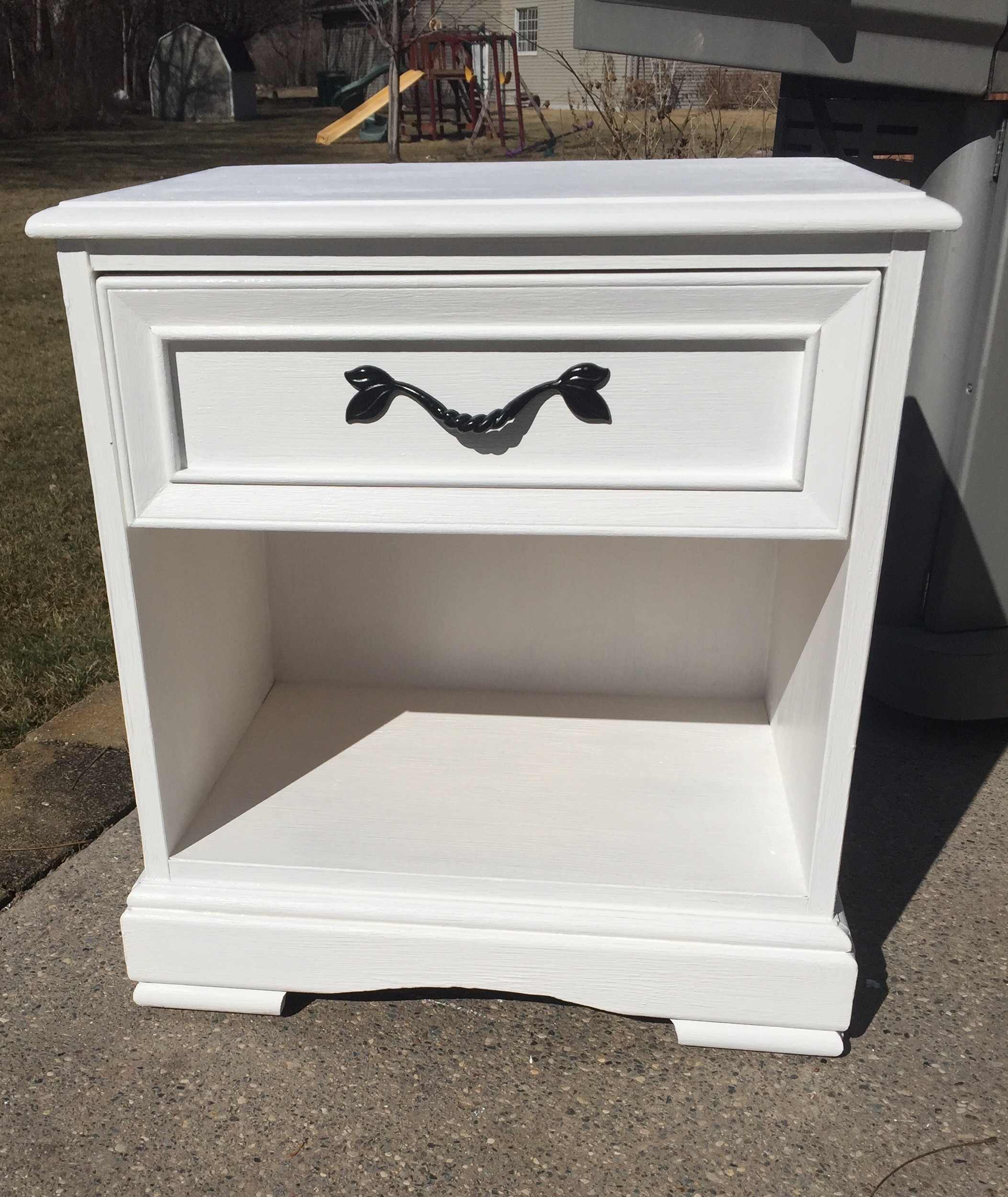 Hey ladies! I know this is an old thread but it's my own thread! So I thought I'd bring it back to the front page. The things you're all doing sound wonderful to stay busy. It's finally spring here and all the snow is melting so I decided to find some thrift store nightstands to fix up. I've added pictures of the process. I started with them as a boring wood color and painted them wih chalk paint white, it gives it a great antique look when you're up close to it. I just love them right now.