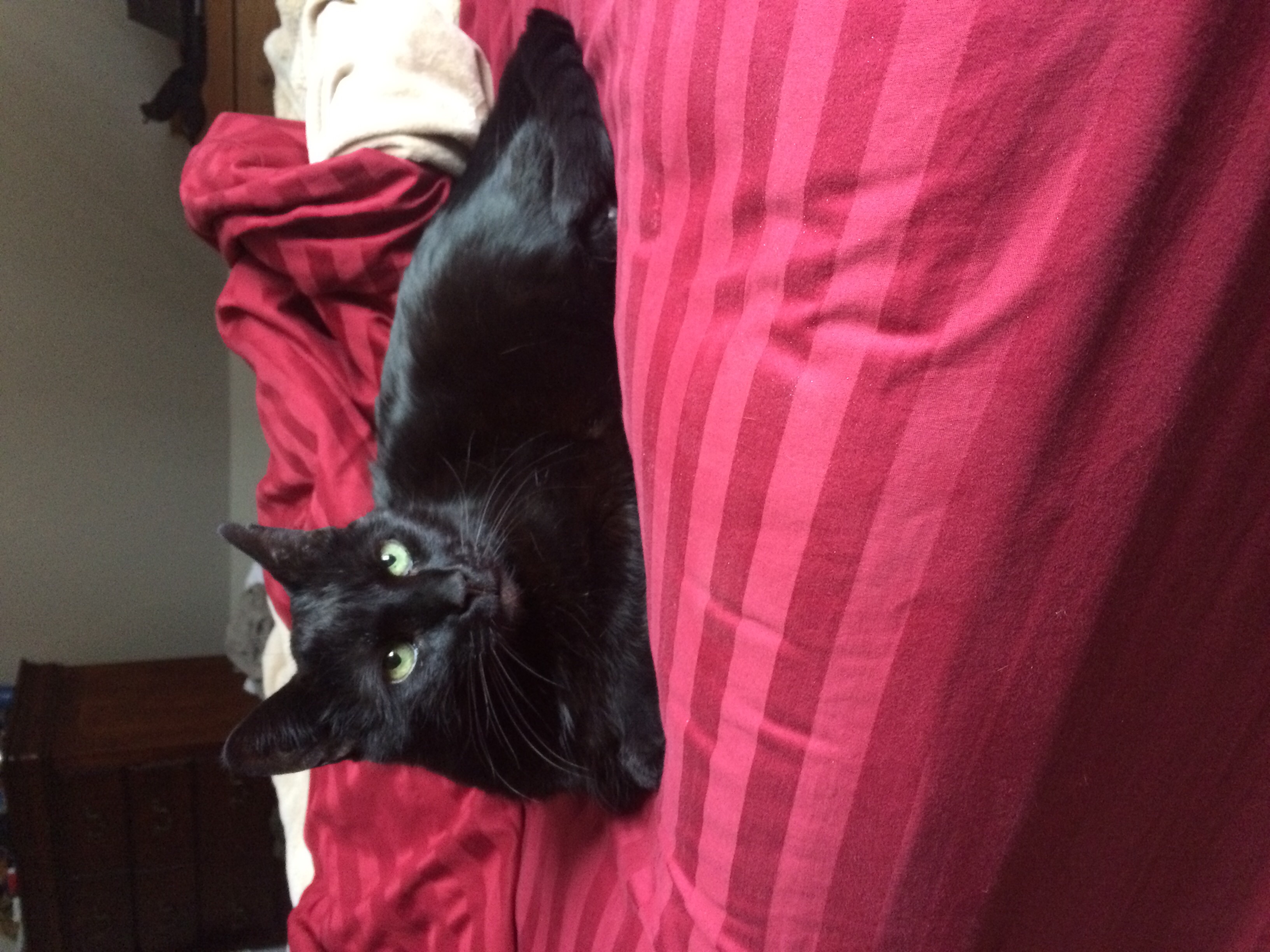 Here's a pic of him planted on my side of the bed.