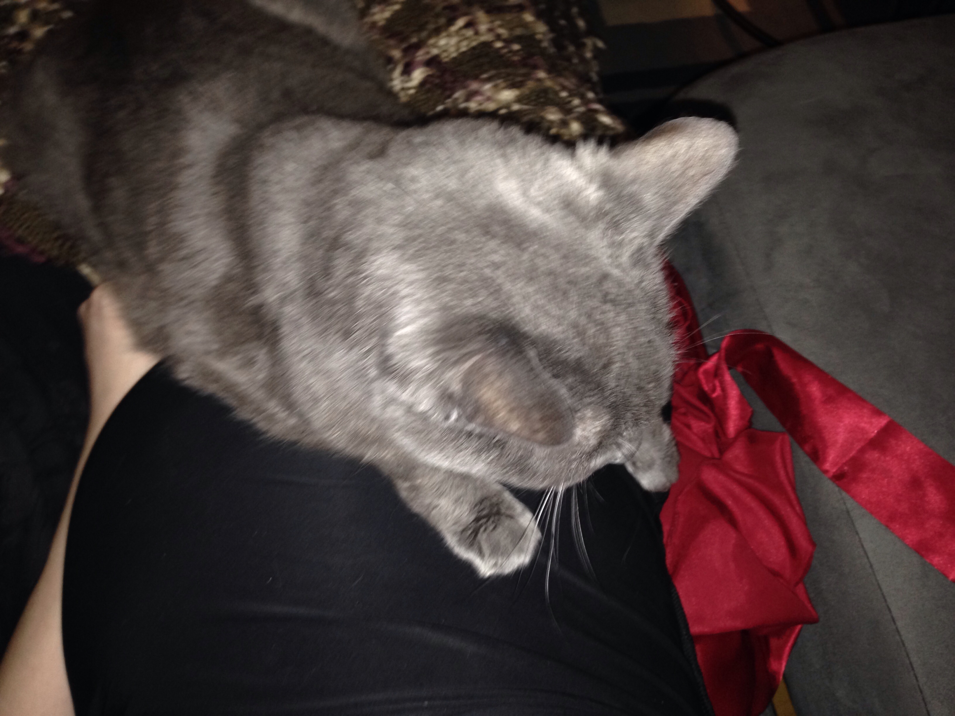 I woke up really early this morning (before 6am) and wanted to go back to sleep, but as I was dozing off again I kept being rudely awoken by LO, who was going to town with the movement! All kinds of thumps and bumps. Must have been doing jumping jacks mixed with MMA in there! Then here comes Samurai, who crawls up onto my ribs, half laying on the side of the bump, gets comfy and starts to purr. I'm thinking how cute that is (he is, after all, the Ewok Praetorian Guard) and wondering if Ewok can hear or feel him purring, and damned if the kid doesn't calm down in there!