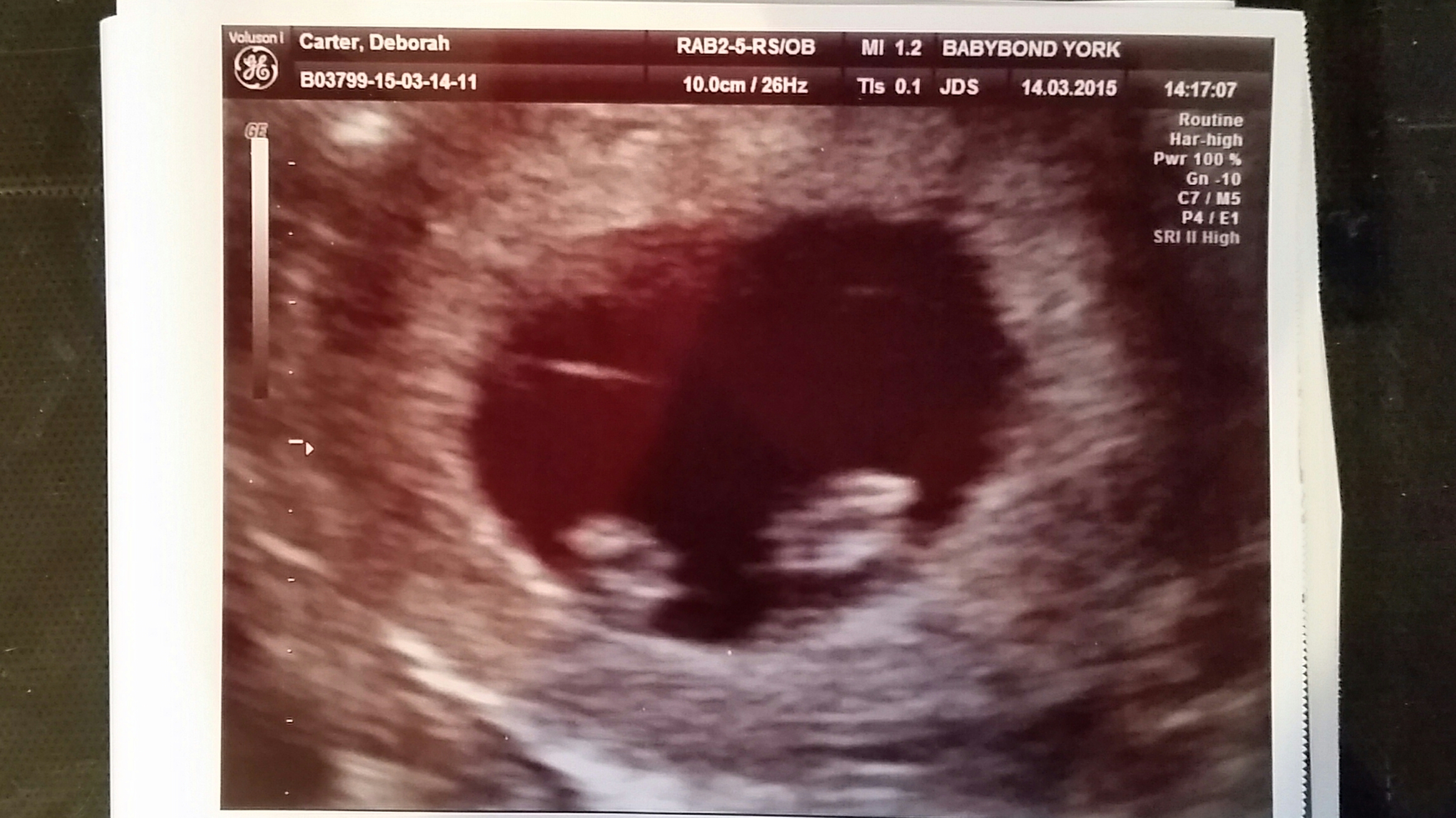 Taken some where in the middle of week 11, maybe week 12. One adoreable mini-me I do have a better one showing it's cute nose but that's lost somewhere in the pc atm.