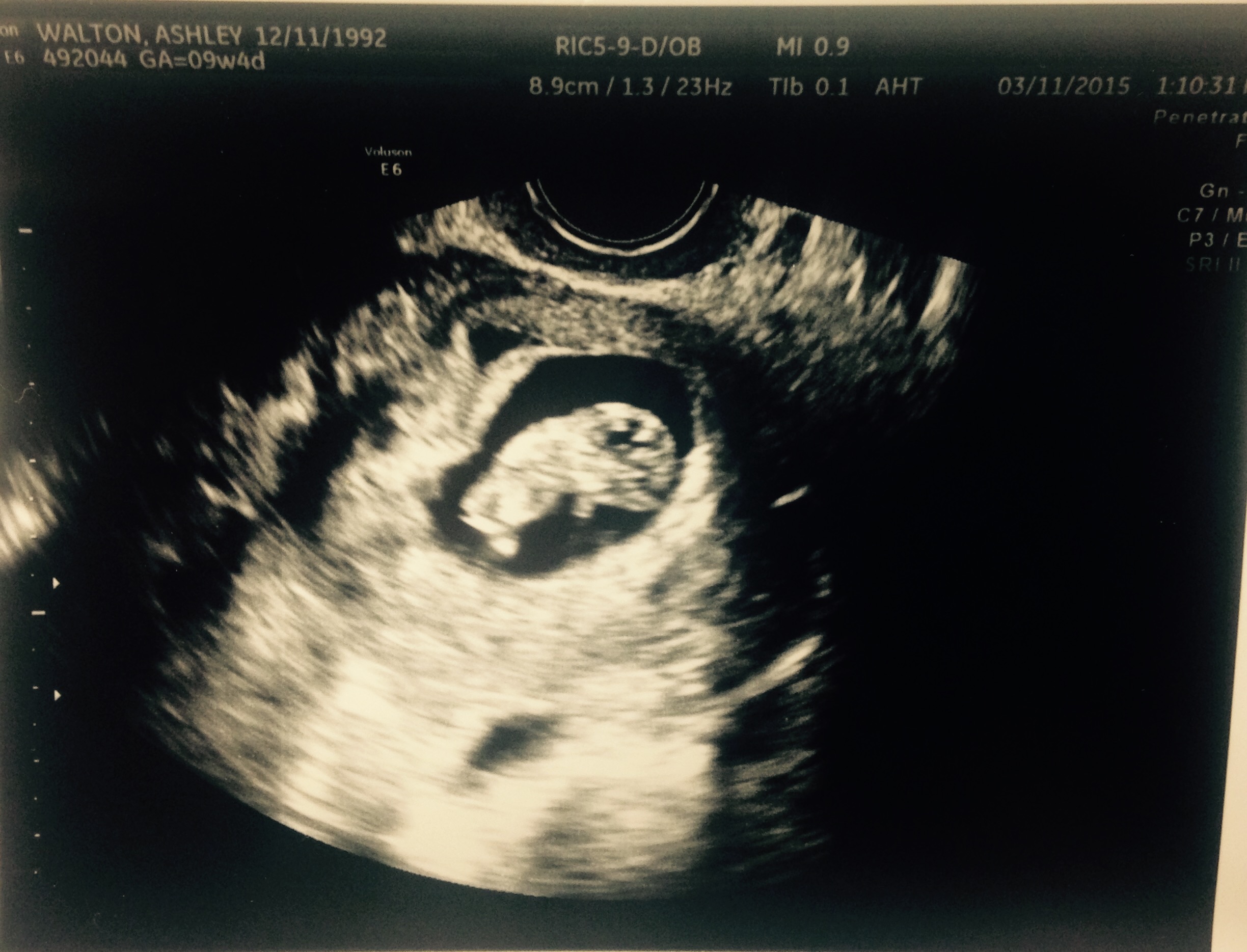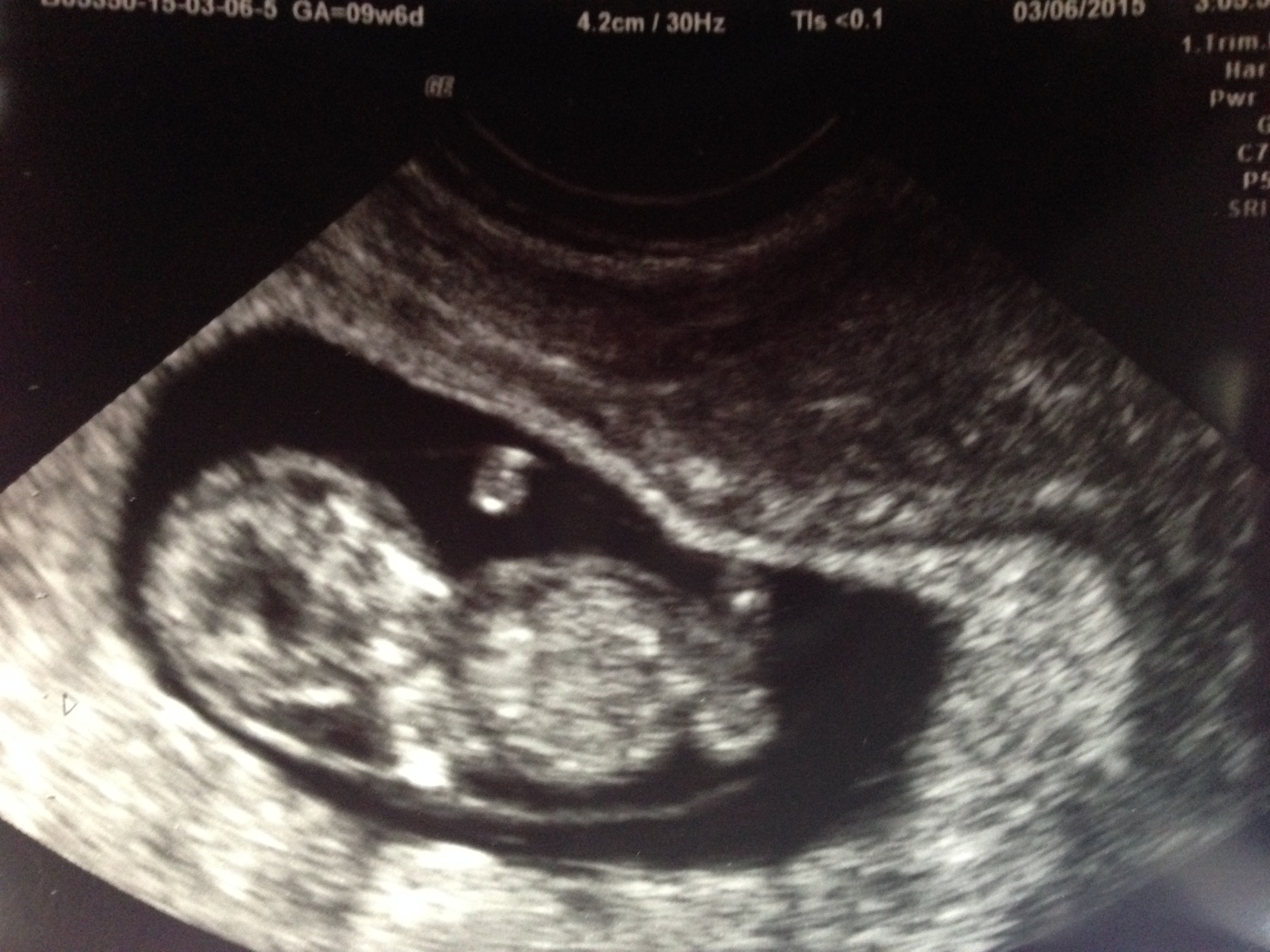 Baby Walton today (3/11) at 9w4d gestational age is +1 day! He even stretched his arm out during the U/S and we saw the heartbeat!! HR is 162 bpm so in love with this tiny thing!!