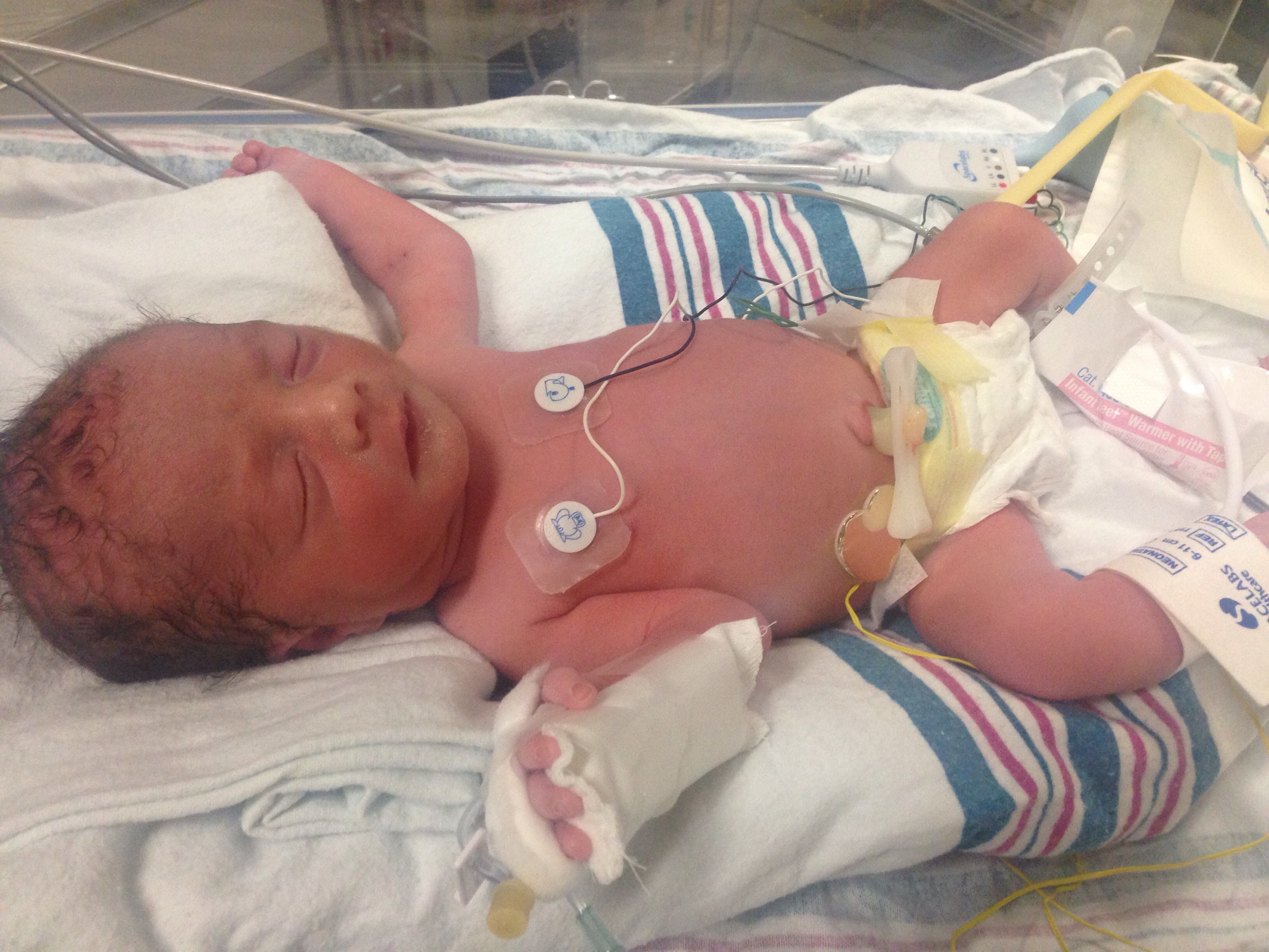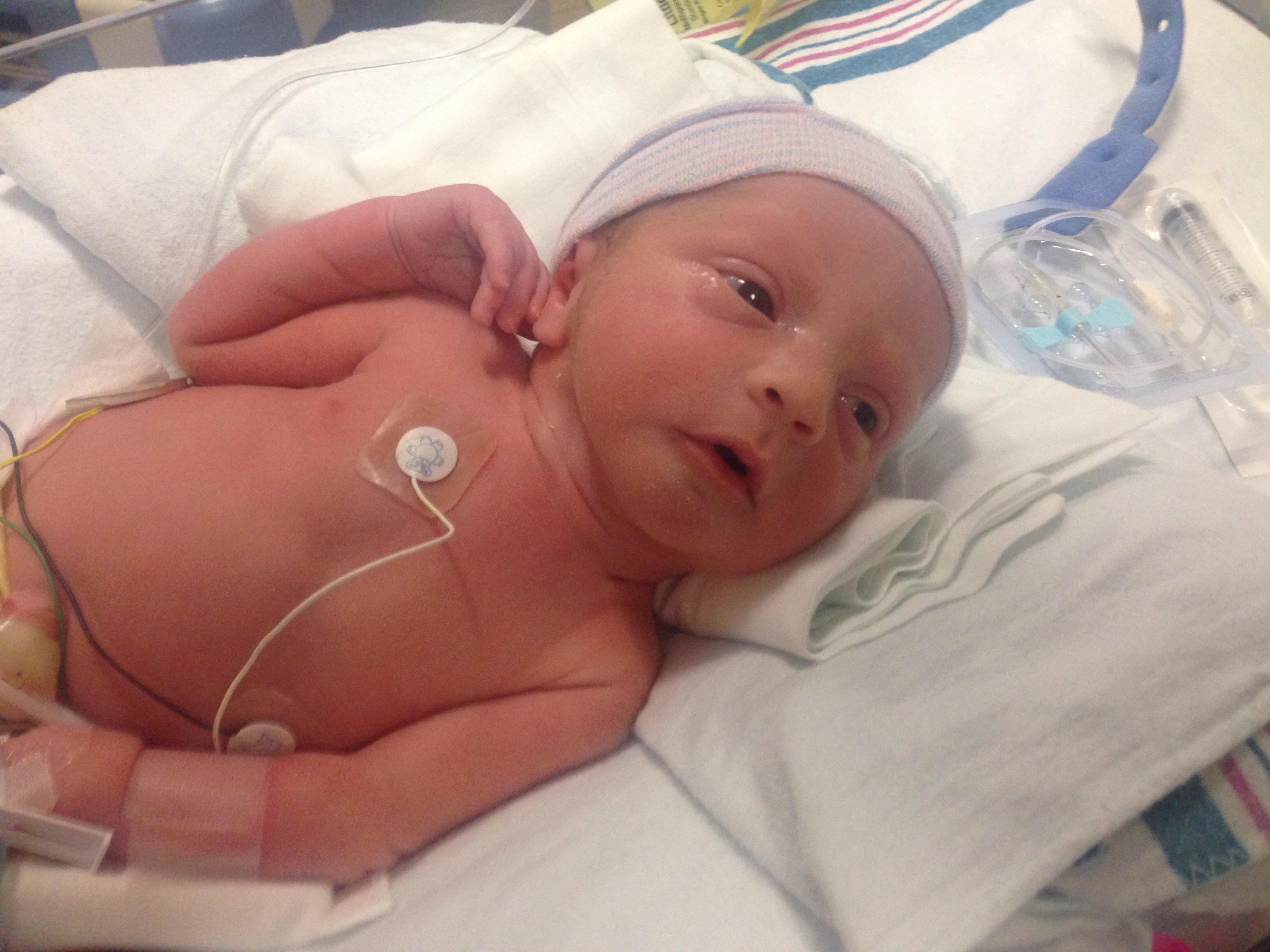 So far both babies have been on and now off (yay!) c-pap to help them get air. They both have had PIC lines put in their arms for an IV so the doctors don't have to keep pricking them in a vein everyday. They tried an umbilical prick first but it didn't go in the right vein for either baby. They also need temperature regulation and lights for jaundice. But Jax has taken milk from the bottle in addition to his feeding tube and is doing better with it every day. I also got to do kangaroo contact with him yesterday which was amazing. Violet is still working on being able to digest food but will catch up soon <3@Ndracer @icajesica82