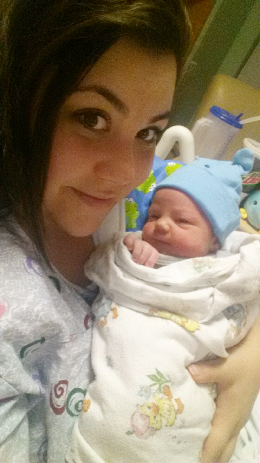 What a beautiful baby boy! Hes perfect!! Mommas looking pretty darn good, too!