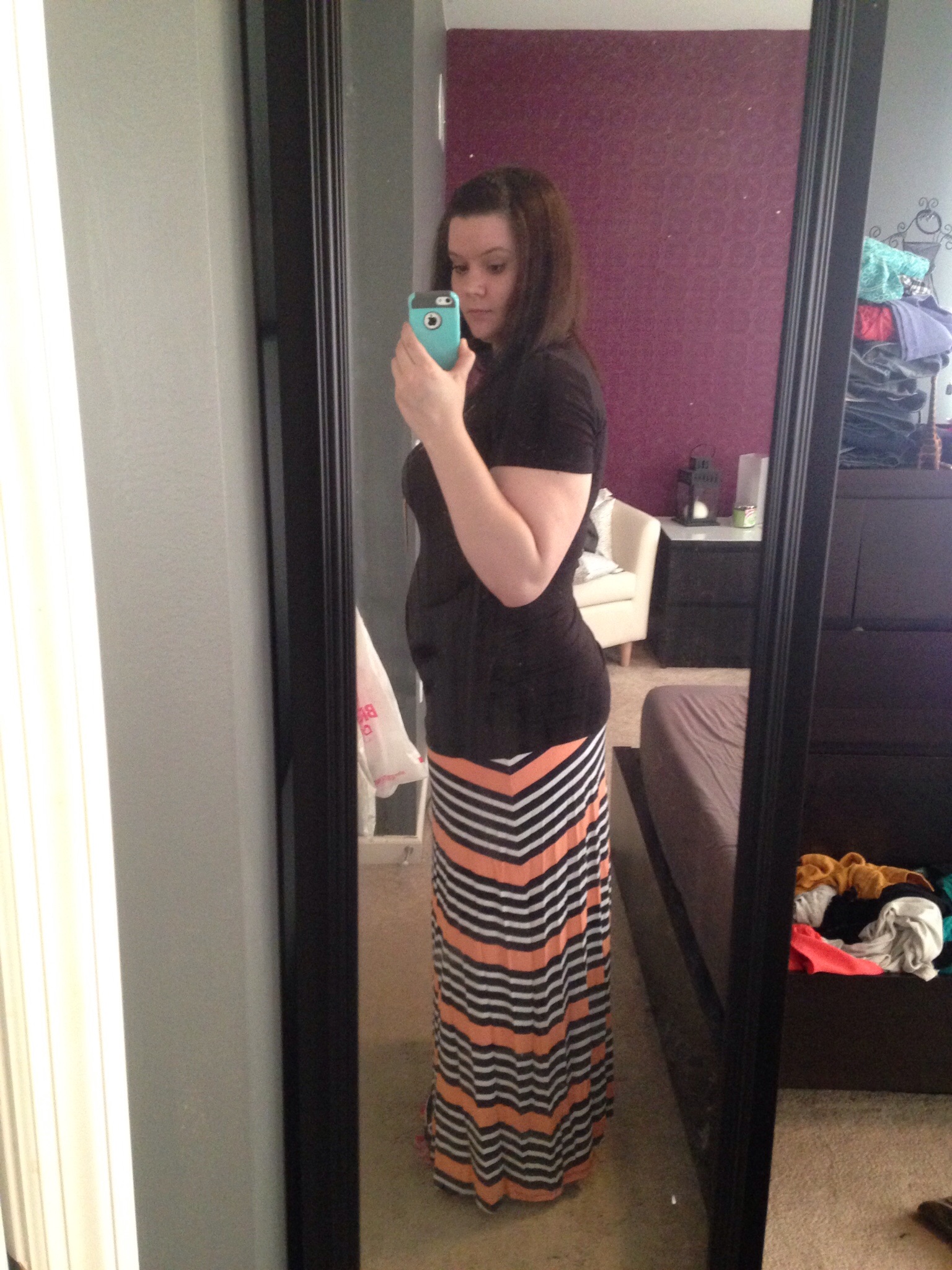 Nah you look great. I know I've been having some way weird body dysmorphia as I grow. It's my first pregnancy and I keep being blown away by how fast my body seems to be growing, I keep having this fear that someone is going to tell me I look like I'm about to pop or something, but I look about your size.