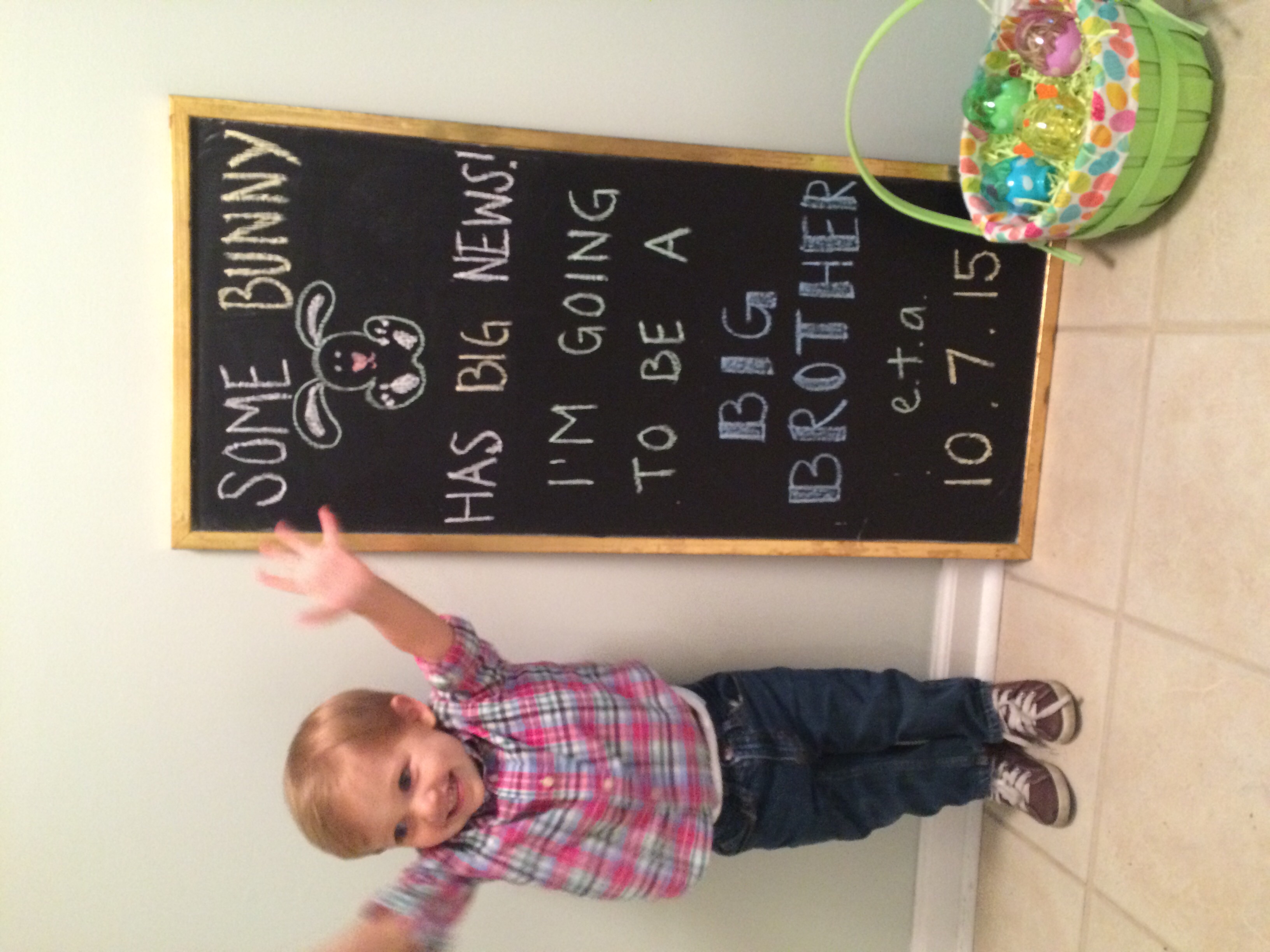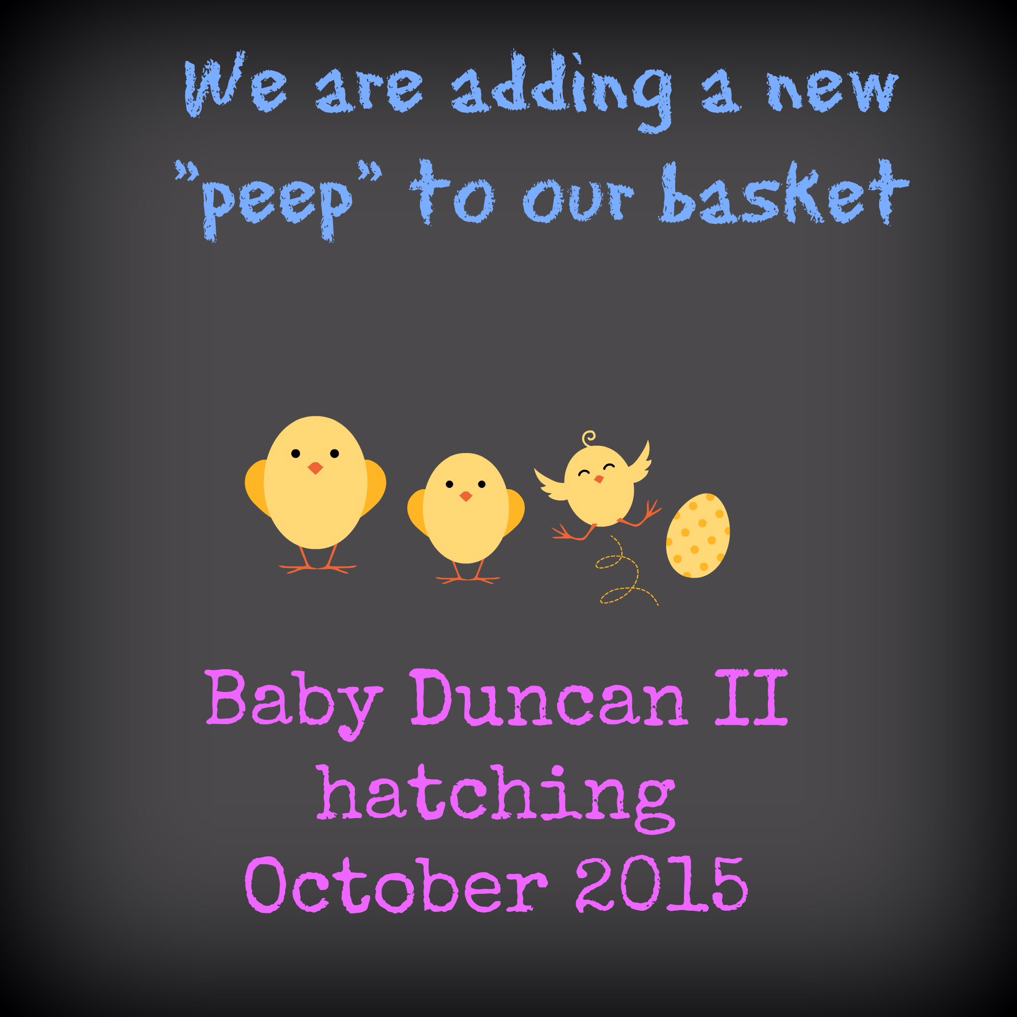 This is what we were thinking for a Facebook post. Close friends and family already know. It will go along with the usual Happy Easter post... Might get rid of "II" I was thinking 2nd baby, but don't want people to think 2 babies