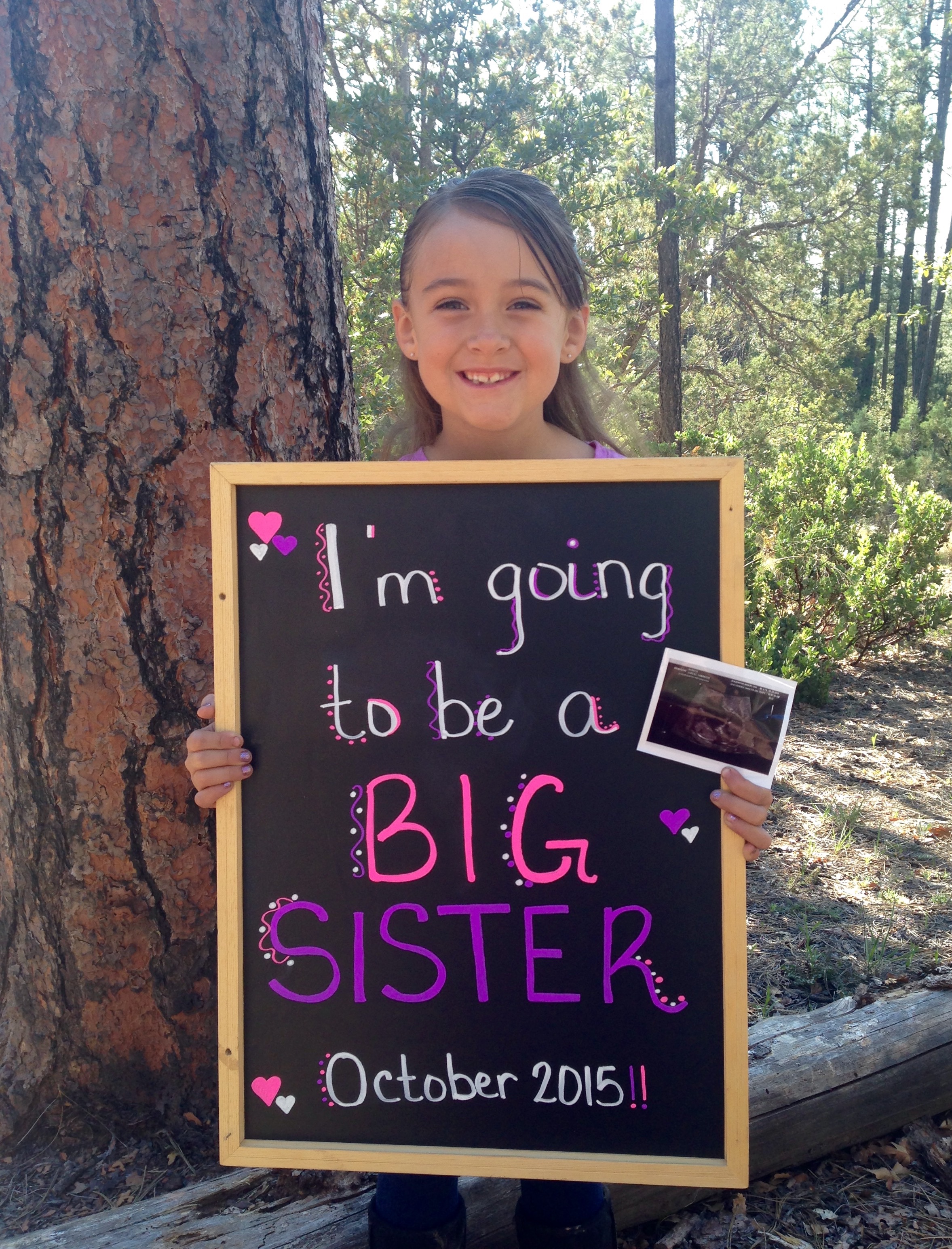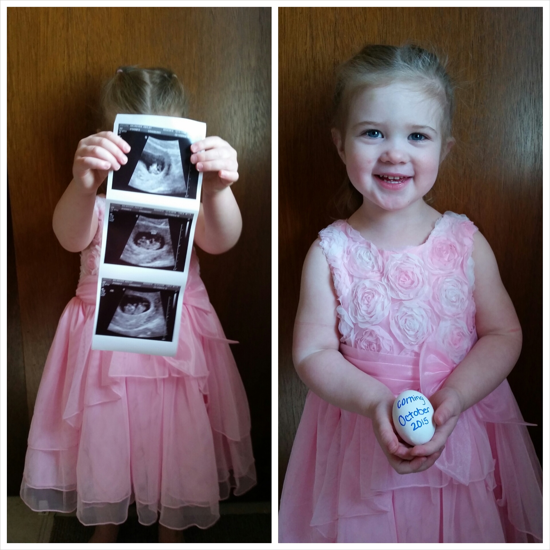 Here is ours! Our little goofball, Lyla, she loves babies and will be an awesome big sister! We just posted earlier this week. We had to hurry to do it since this is our second and my belly is popping already, people were starting to get suspicious!