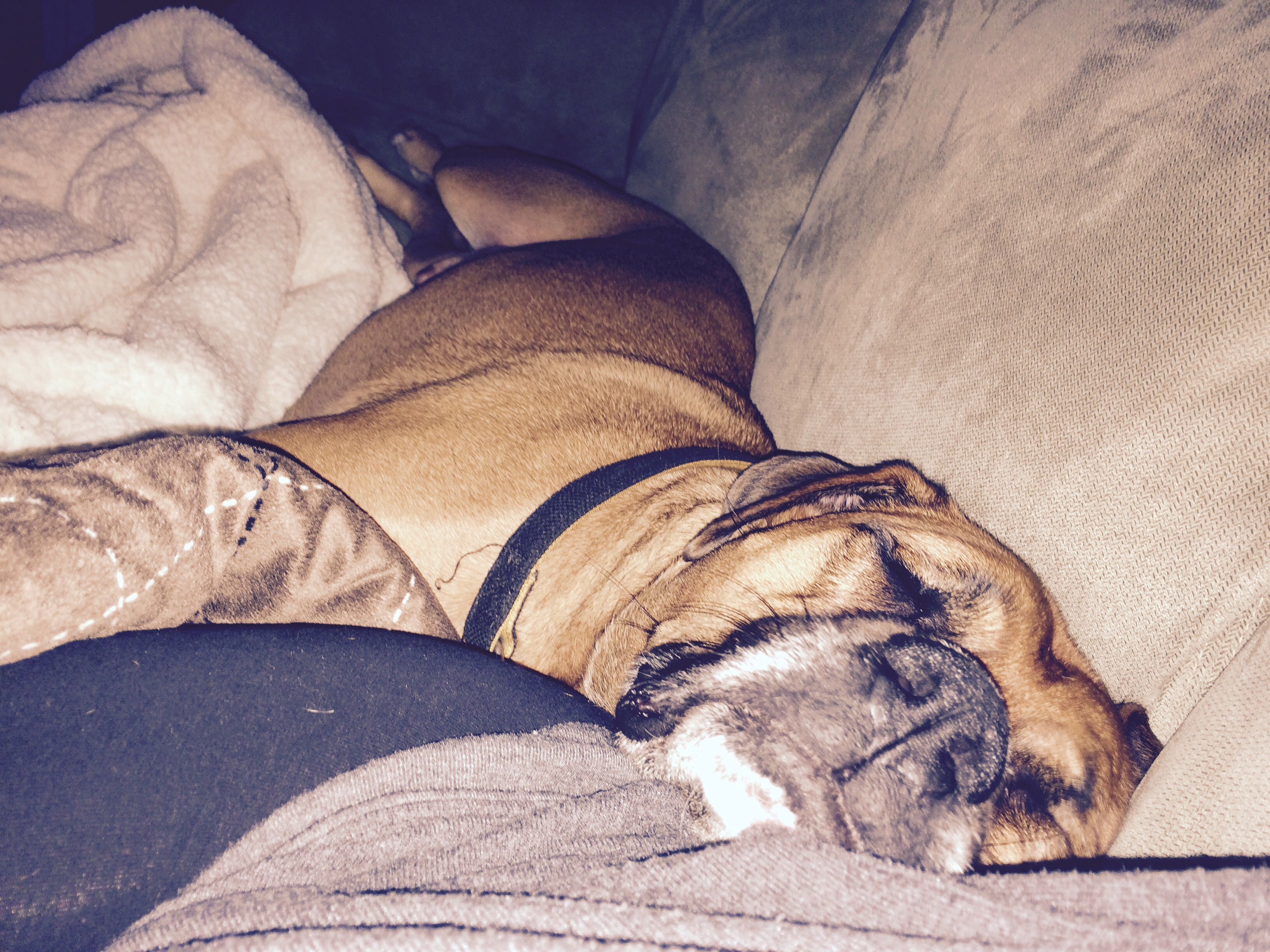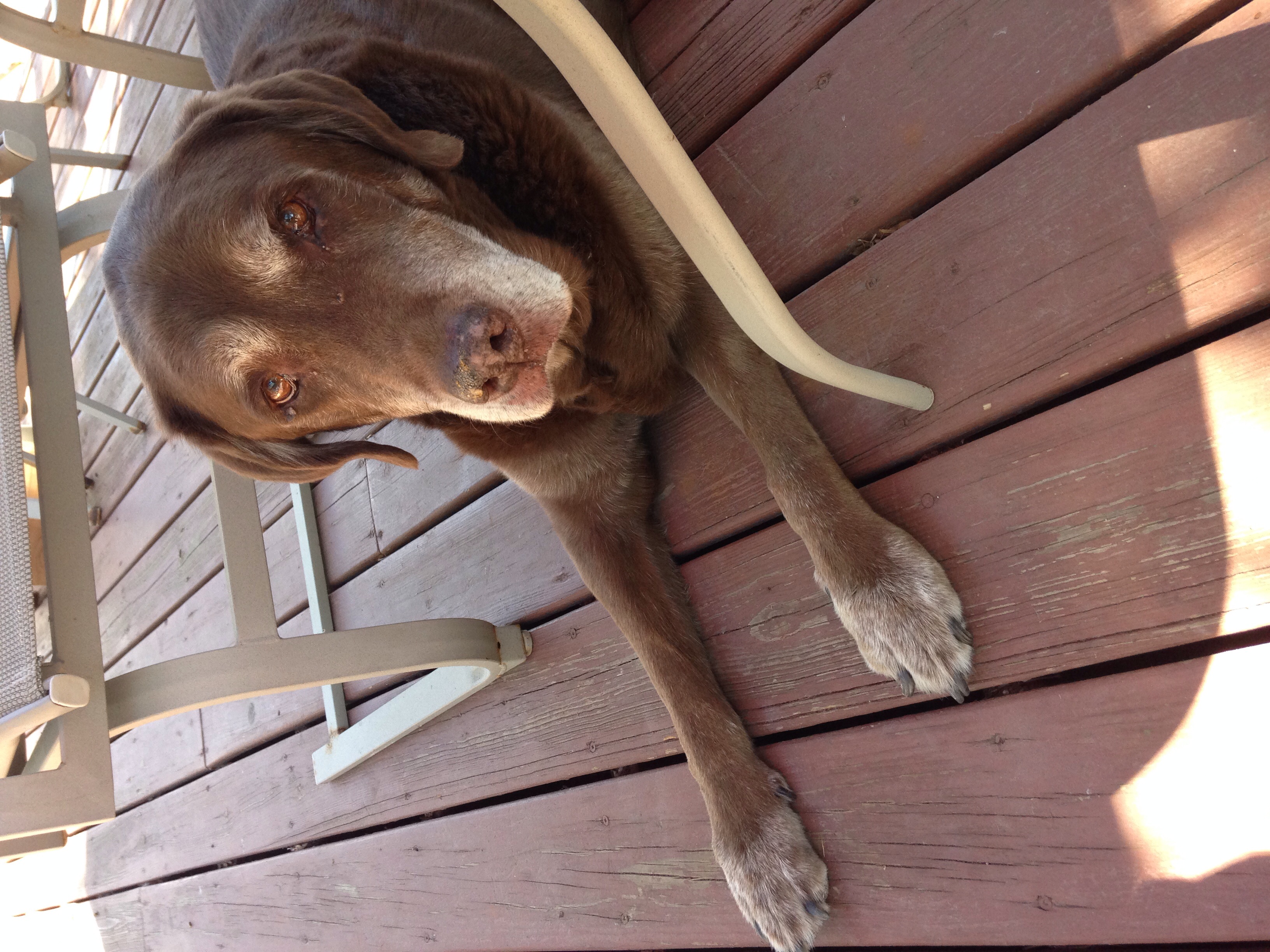 • My old man Toby. He's just started to recover from last weekend when we left him alone with my SIL for the first time since his best friend/brother died. He developed Stress Colitis and crapped all over the house because he was so freaked out. He hasn't been the same dog since Loki passed. Now we have freshly cleaned carpets and a nice bill from the vet. Poor fella.