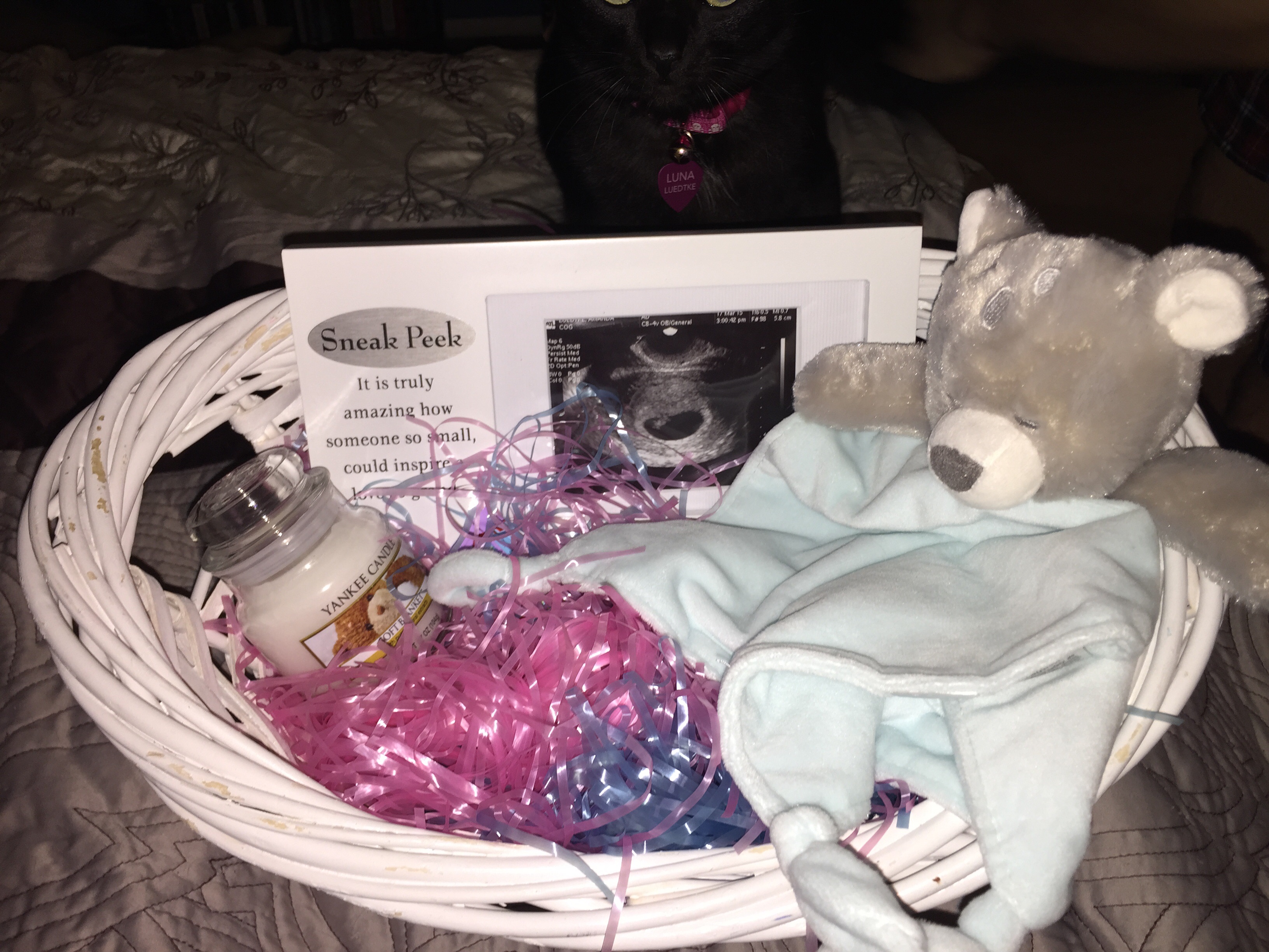 I am telling my parents and my husbands family on Easter. I will be 10 weeks on Easter and thought it would a good surprise to let them know with an Easter basket.