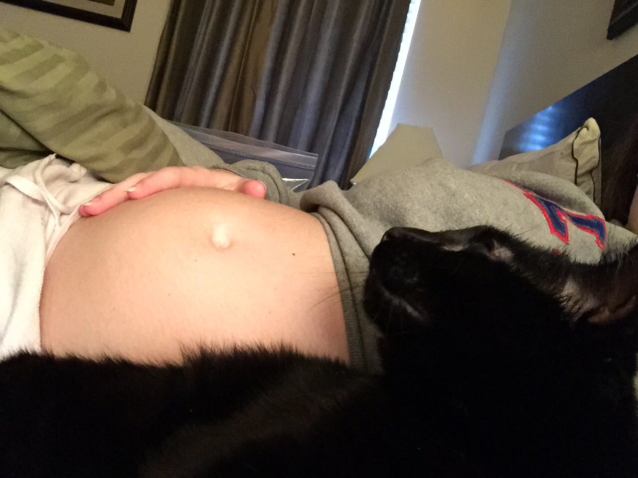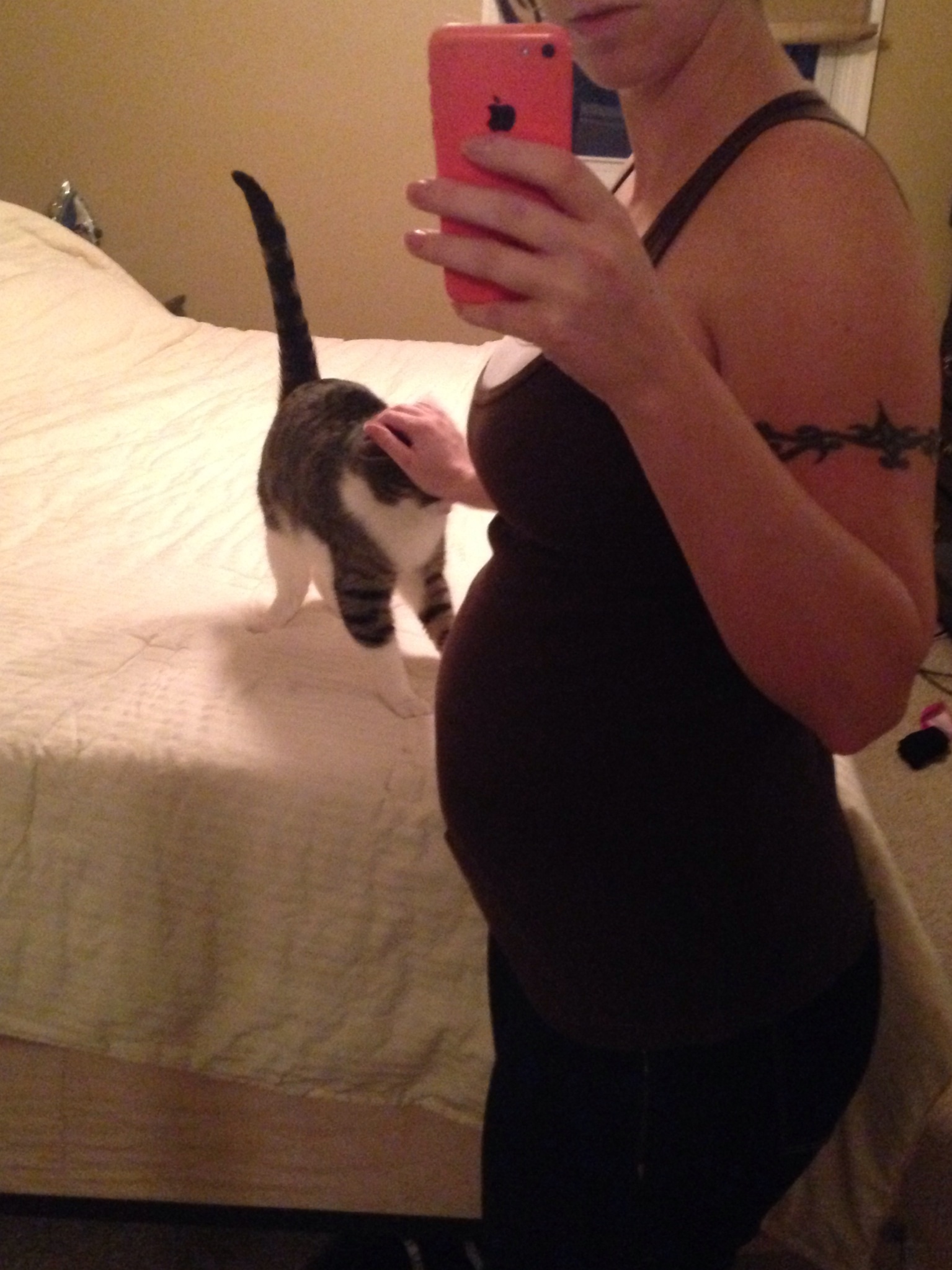 Cat snuck into our laundry room last week when DH left door ajar. Yes, the laundry room where I think the litter box needs to go after LO is born but DH is convinced it too dangerous for our cat because of the boiler in the same room.