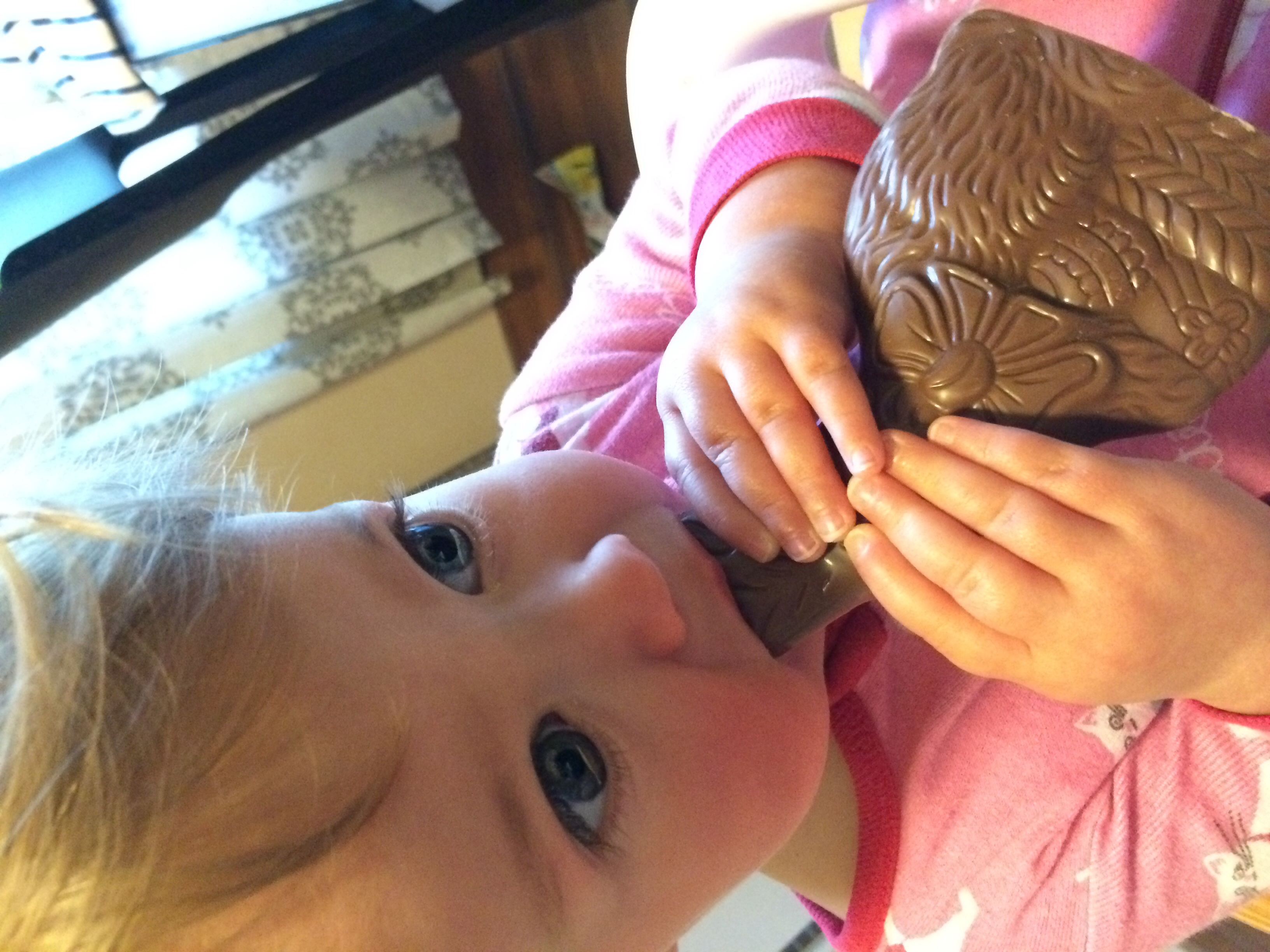Happy Easter!!! (Photo is daughter's first ever taste of chocolate!!)