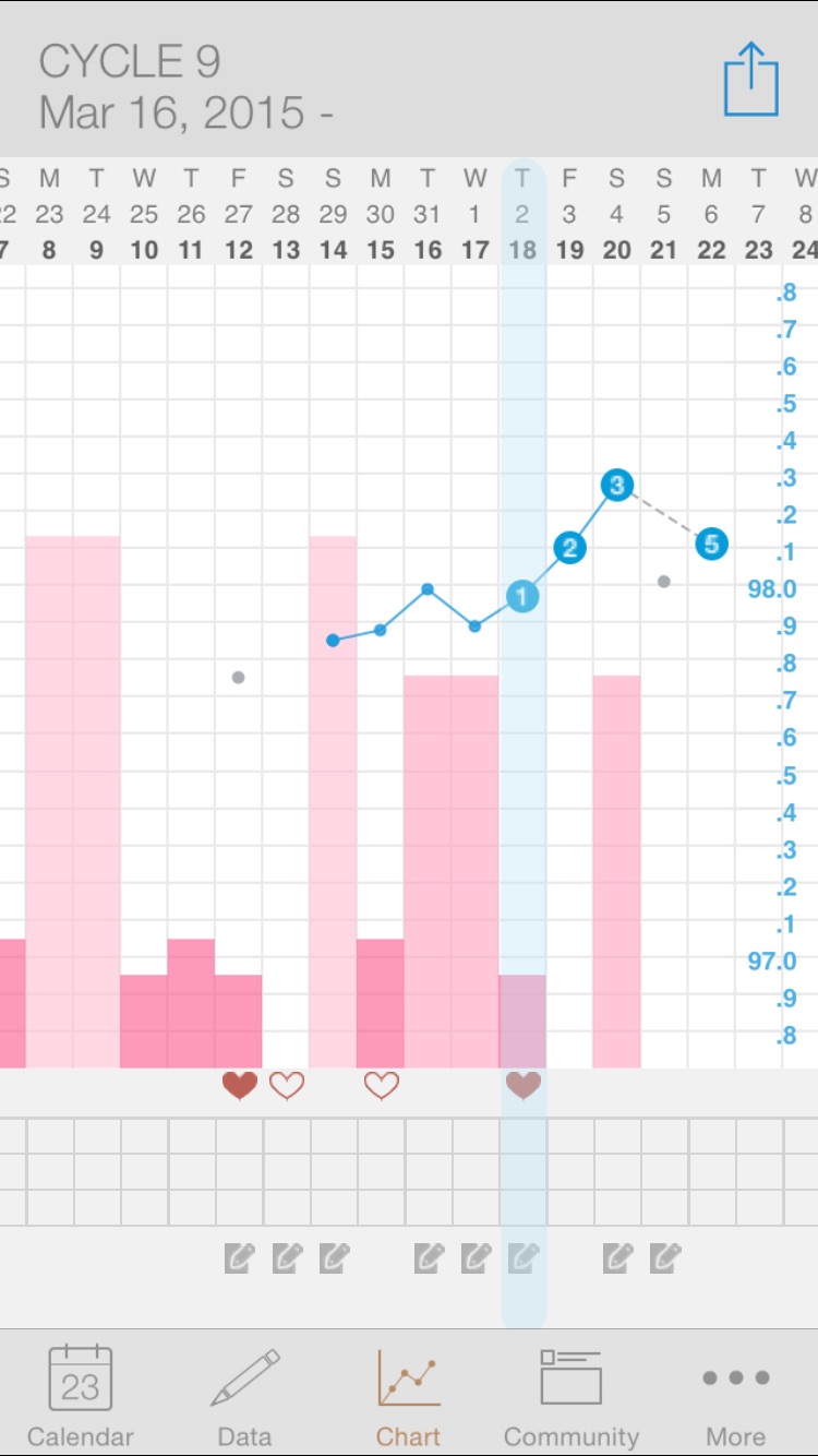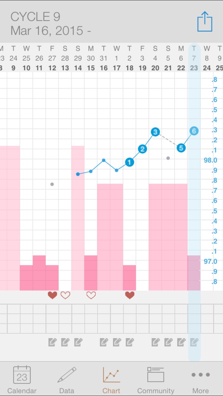 I haven't charted enough cycles to know if this is unheard of for me but it's really confusing. The cycles I've charted I had a big jump the day after O. I didn't get a jump this cycle, I got a slow rise three days in a row and it didn't go as high as I'm used to. Now it's hanging around the same range, a little lower but still above coverline. Does this sound like an anovulatory cycle or have any of you had an occasional slow rise when you normally have a jump? I just don't know what to think. Grrr.