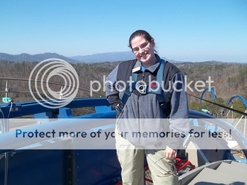 A popular photo tag for my friends and coworkers down there was "I work where you vacation." And I have some quite awesome photos of me in full Hogwarts student regalia in front of and inside the castle (I worked on Forbidden Journey, the ride inside the castle). I got to check Seamus Finnigan (well, his actor's) bar when he rode. But my favorite photo of me taken in an amusement park was at the top of the lift hill of Wild Eagle at Dollywood, where I used to be the team lead of the ride crew. Not everyone can say they've climbed to the top of a 205 ft coaster lift!
